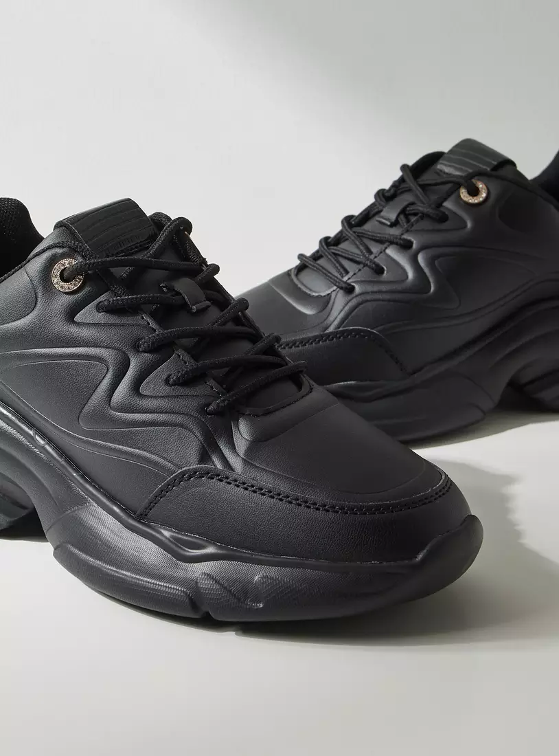 Textured Sports Shoes with Lace-Up Closure and Pull Tabs