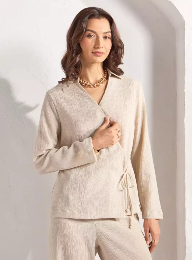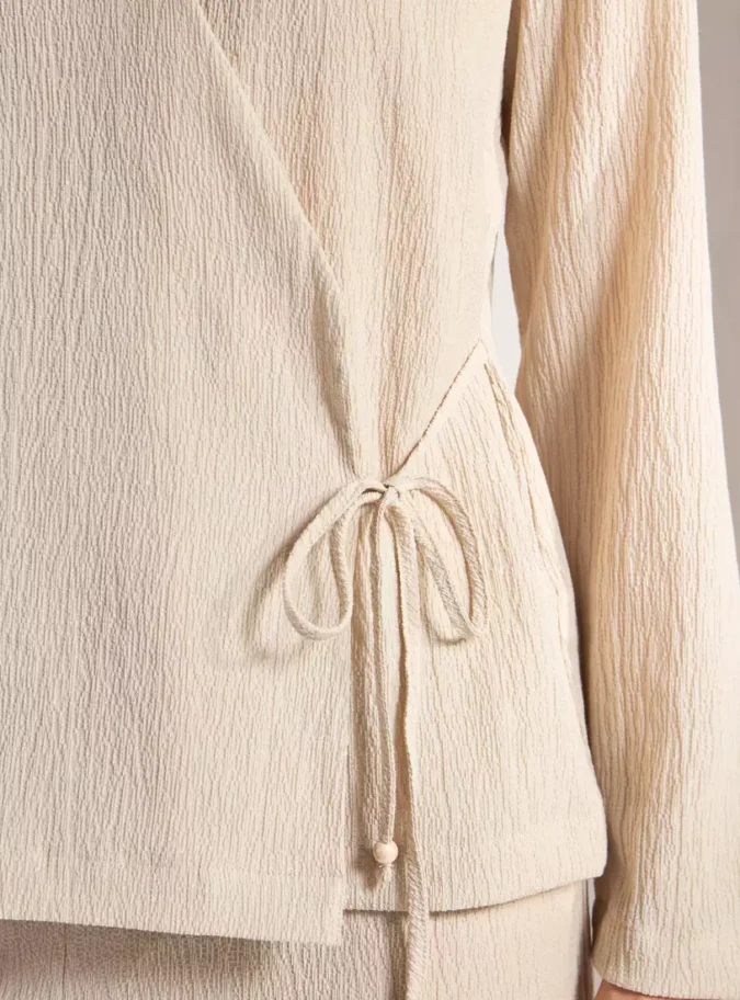Tie-Up Neck Detail: Adjustable tie accent for a touch of elegance and personalization.