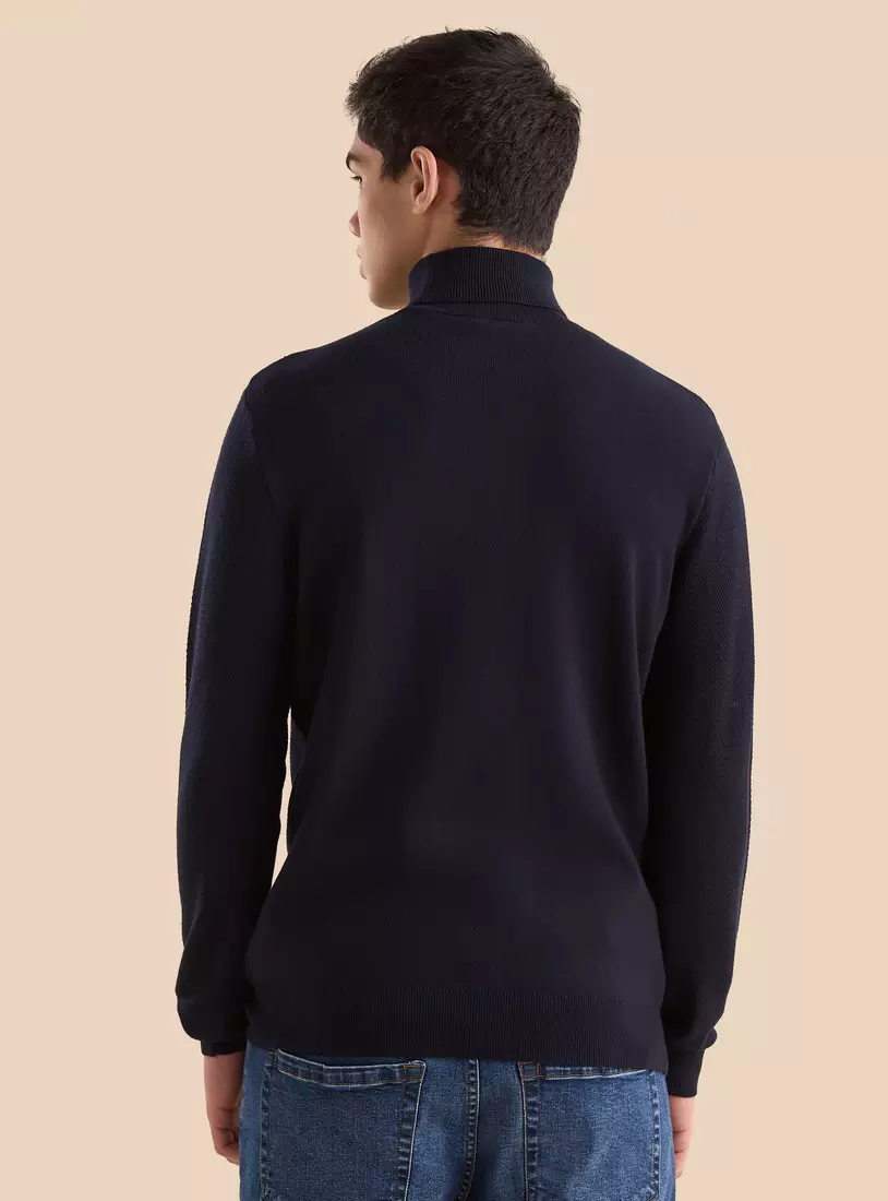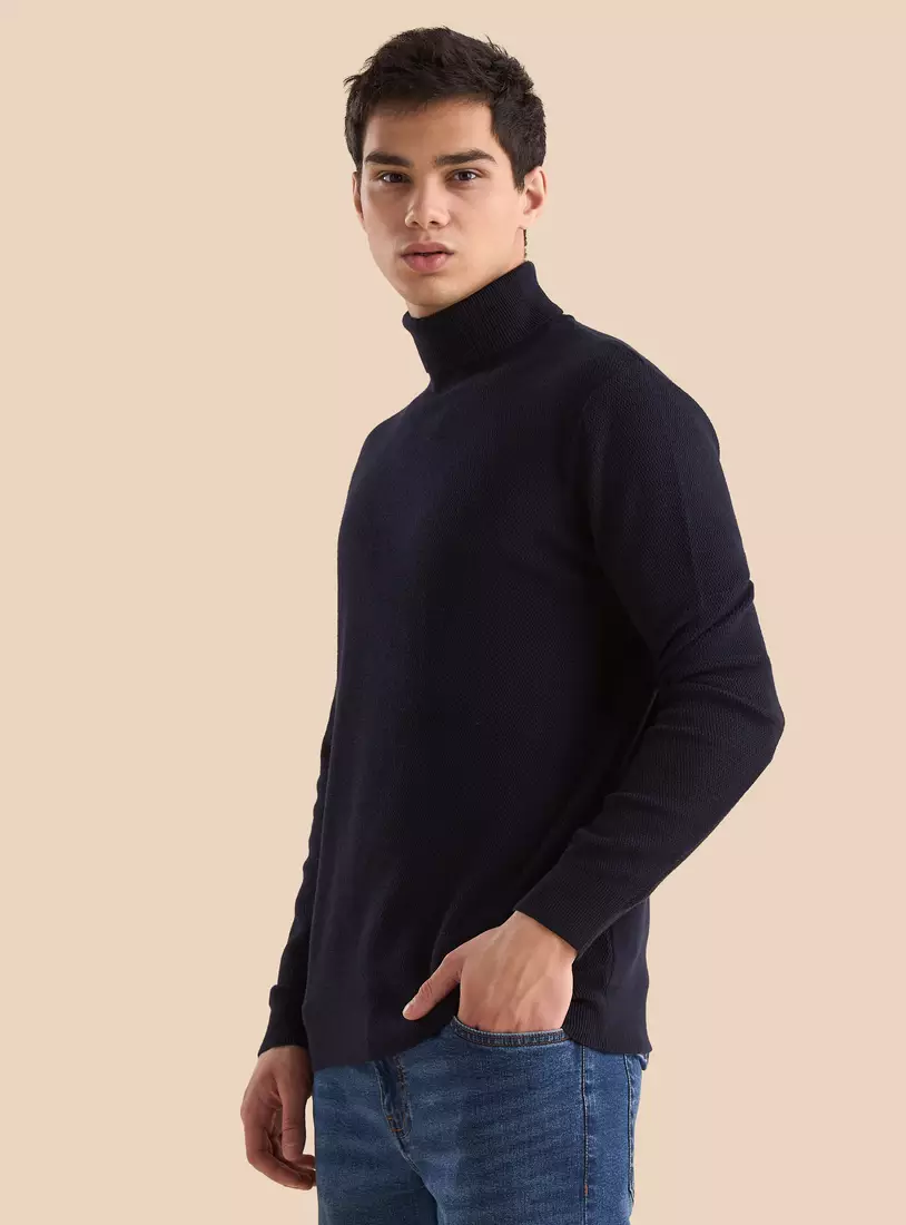 Textured Fabric: The sweater is made from a soft, textured fabric that adds depth and dimension, making it visually appealing while offering comfort.