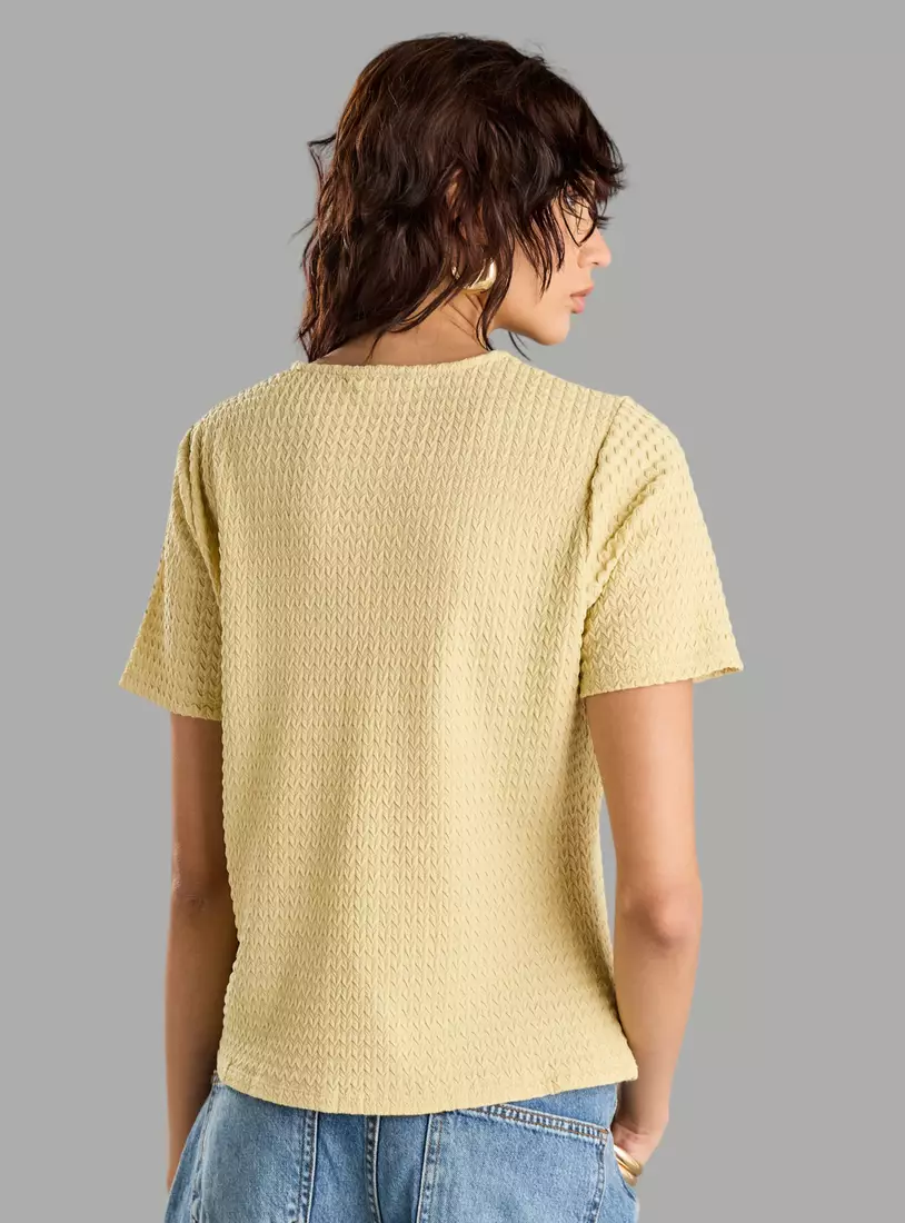 Stylish Design: Textured fabric with a modern V-neckline for a trendy yet sophisticated appeal.