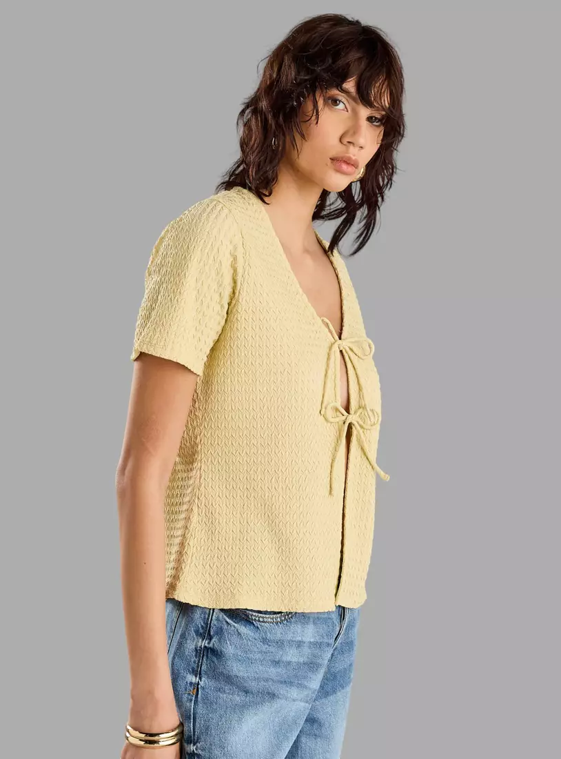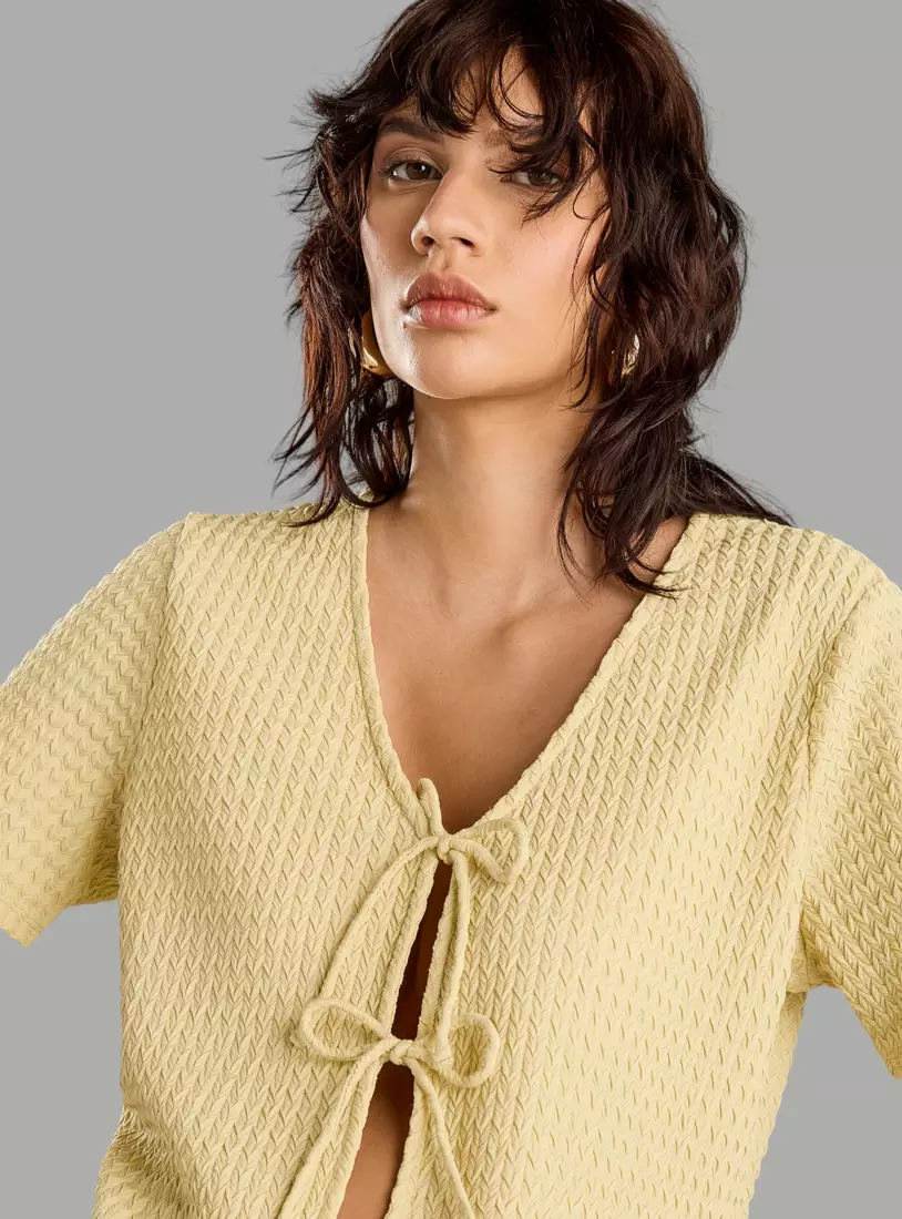 Adjustable Tie-Ups: Features chic tie-up detailing for a customizable and elegant touch.