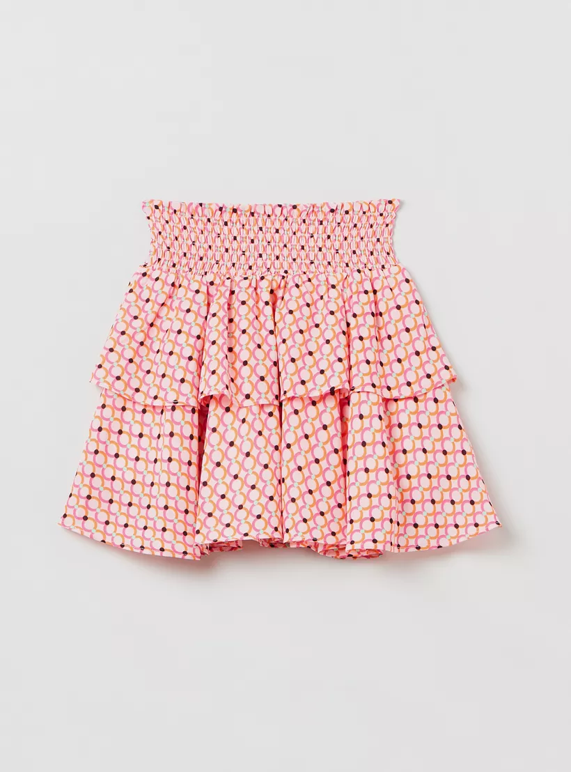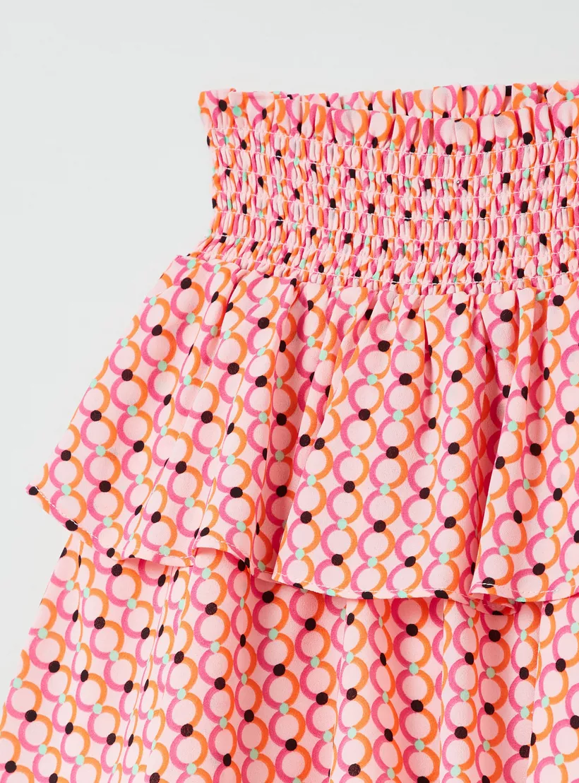 Tiered Skirt With Geometric Print