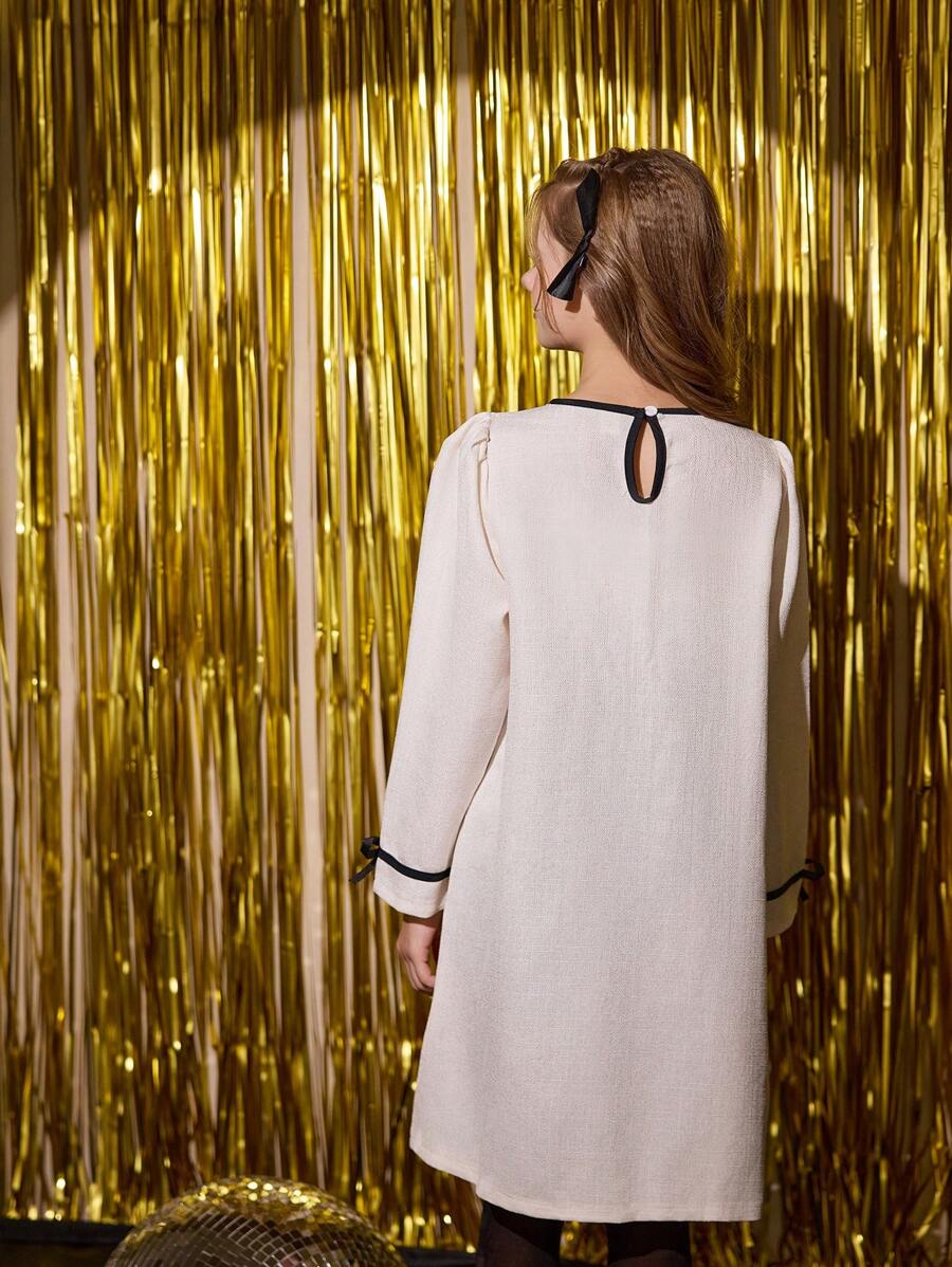 Tween Girl Apricot Long Sleeve Bow Decor Comfortable Casual Style Pockets Dress, Suitable For Spring And Autumn (Sibling Outfits/Matching Outfits - 2 Pieces Sold Separately) quantity