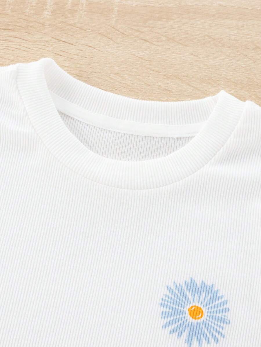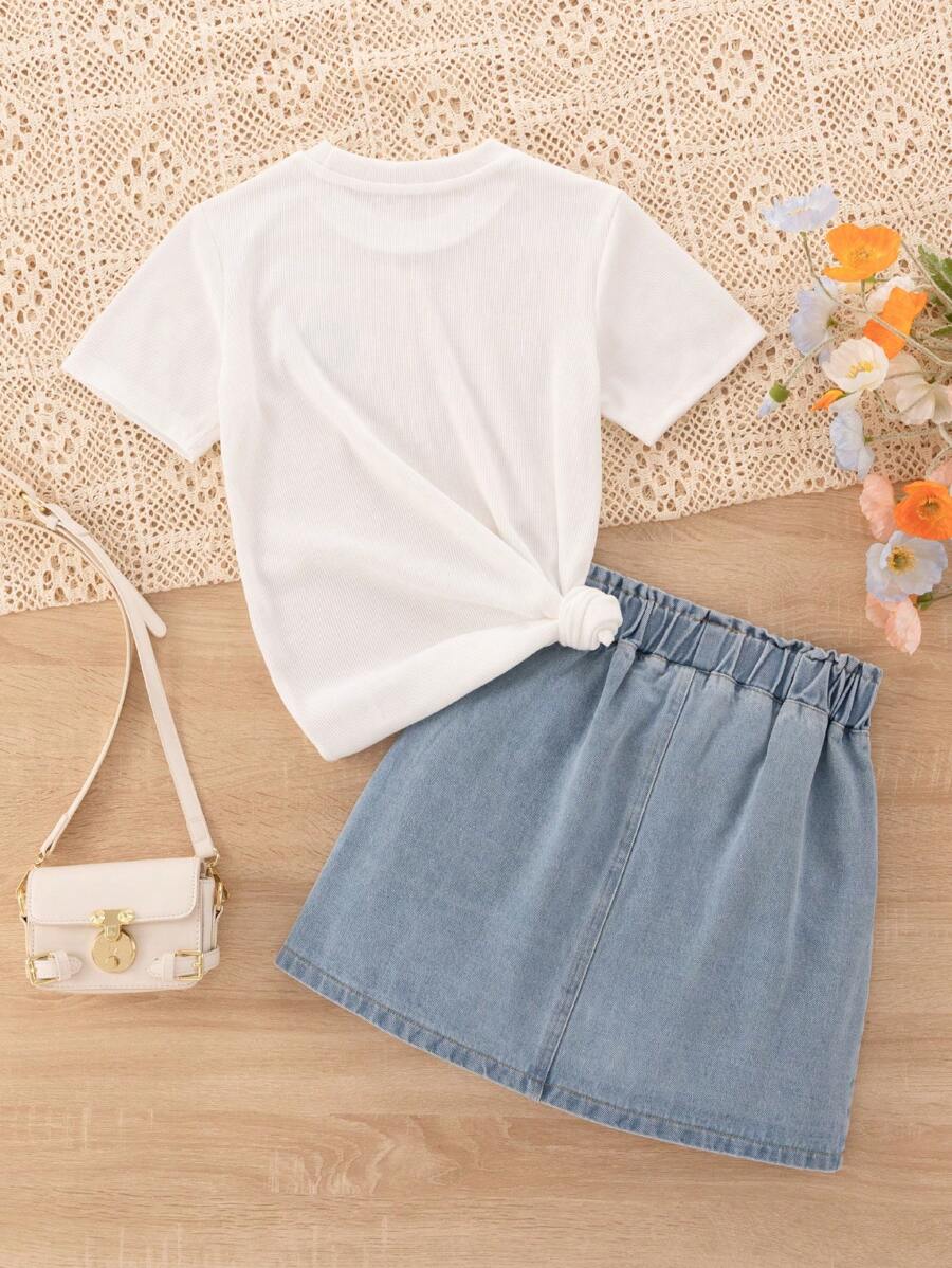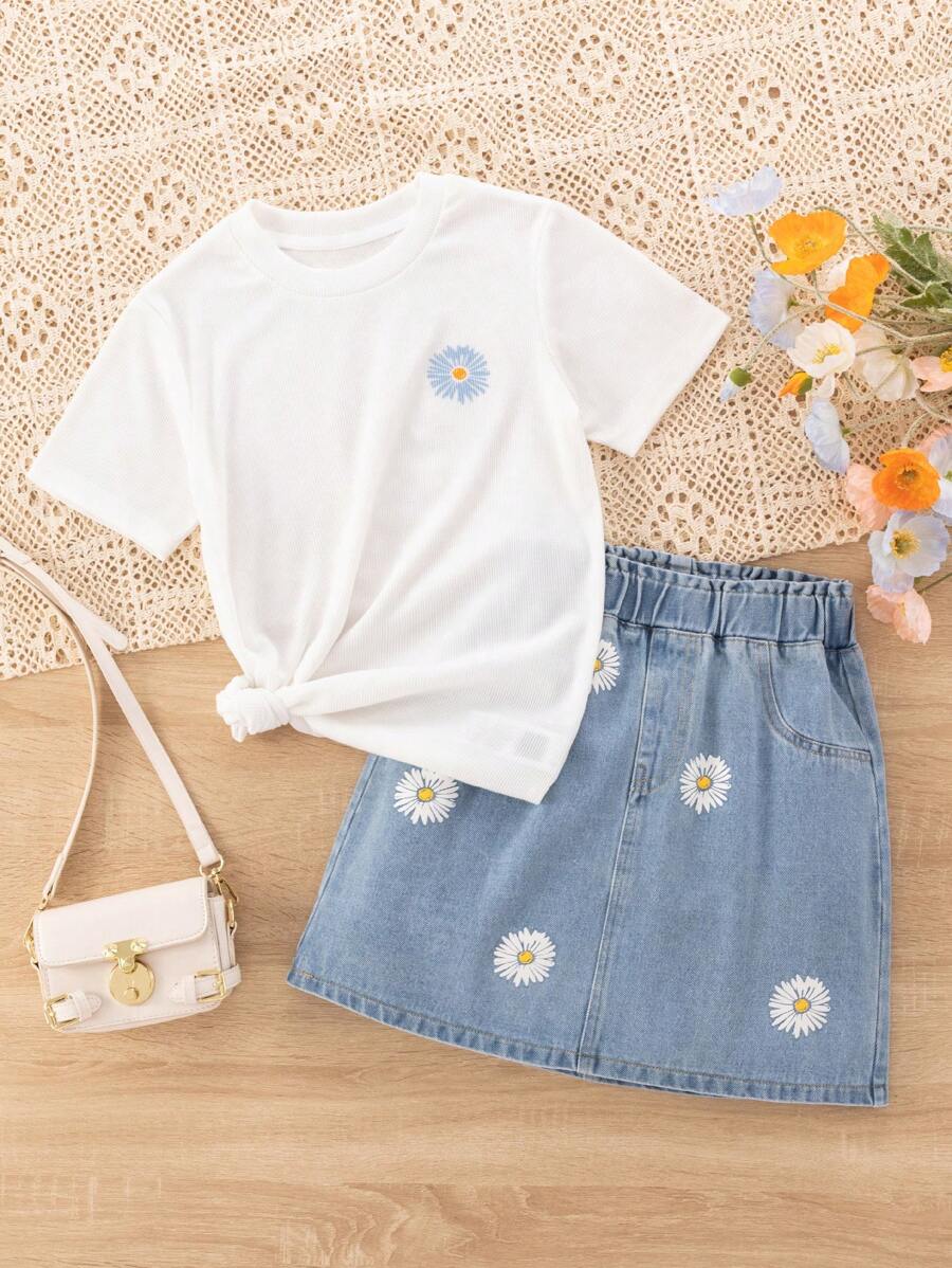 Tween Girl Daisy Printed T-Shirt & Denim Skirt 2pcs/Set