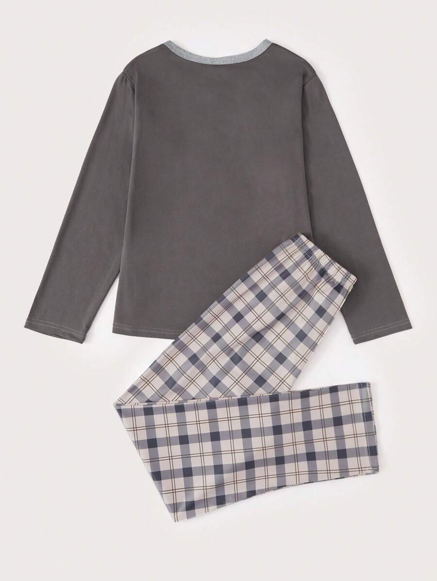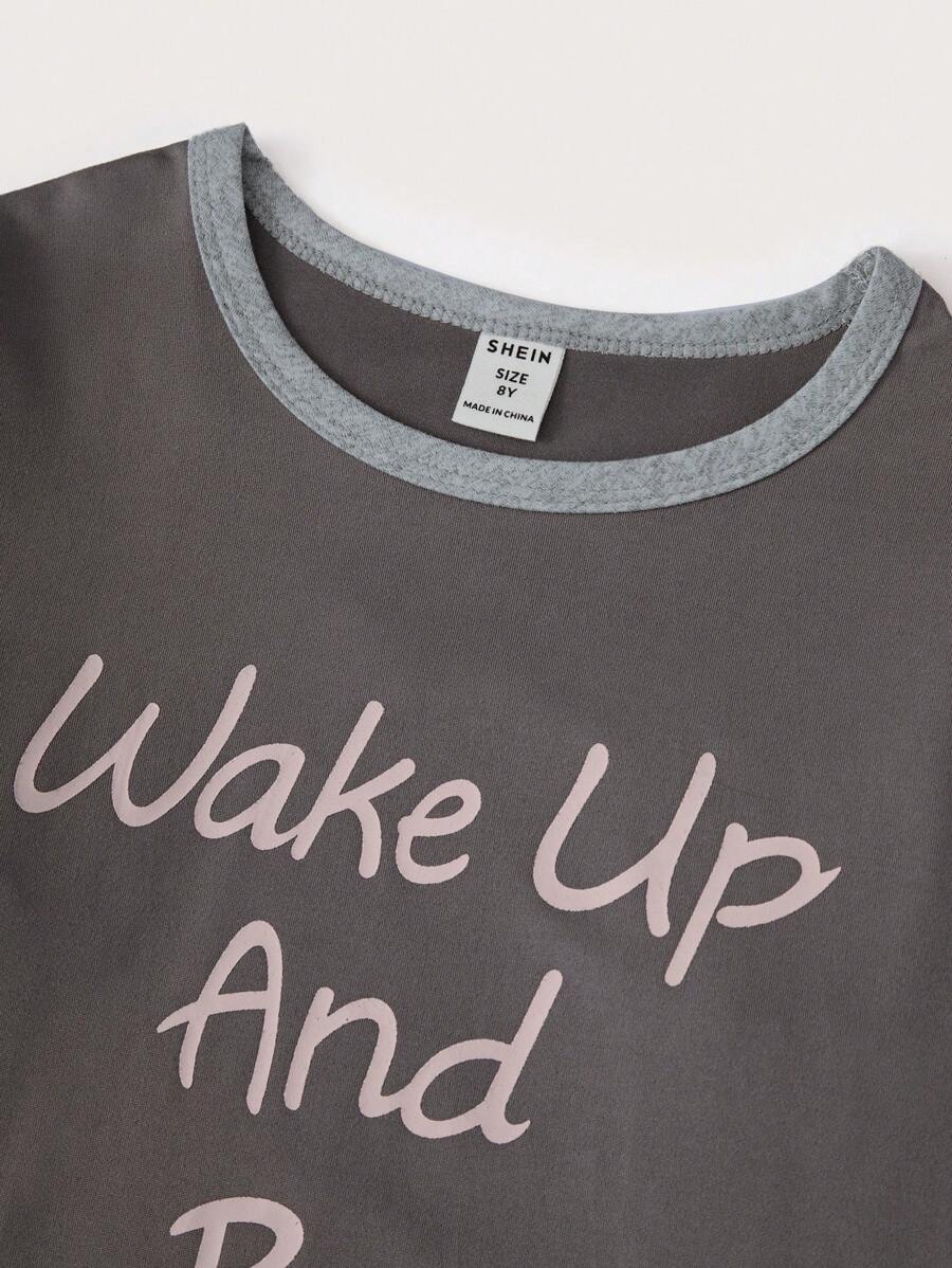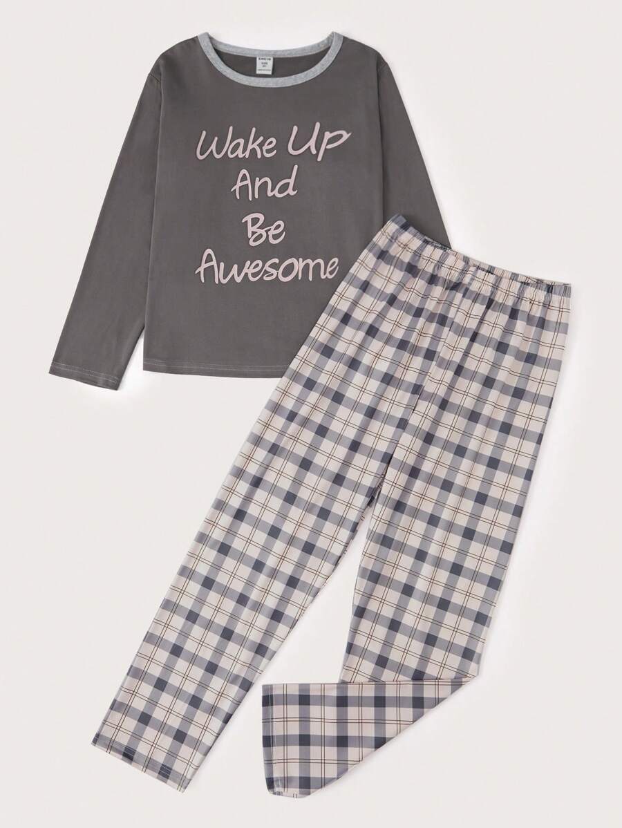 Tween Girl Slogan Printed T-Shirt And Checked Long Pants Homewear Set