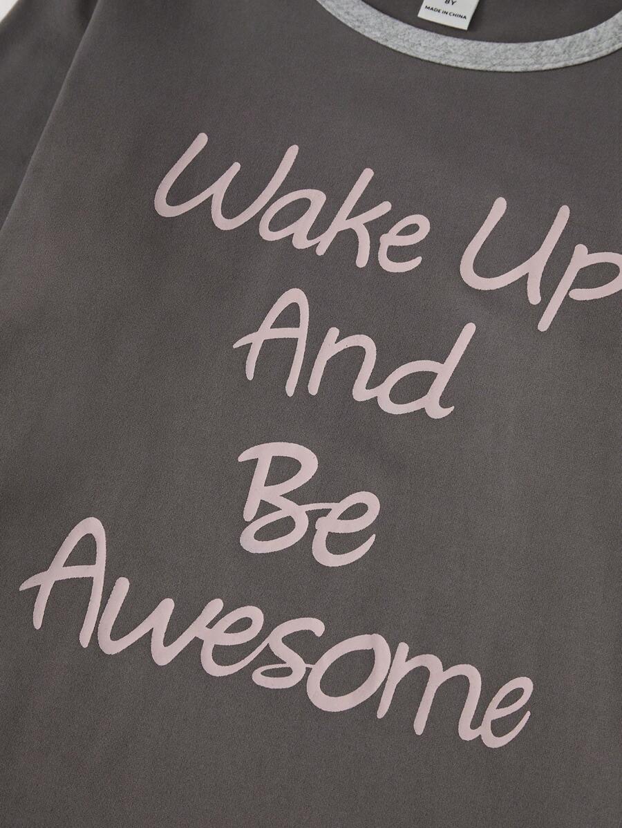 • Top Design: Trendy slogan-printed T-shirt with a relaxed fit, perfect for lounging.