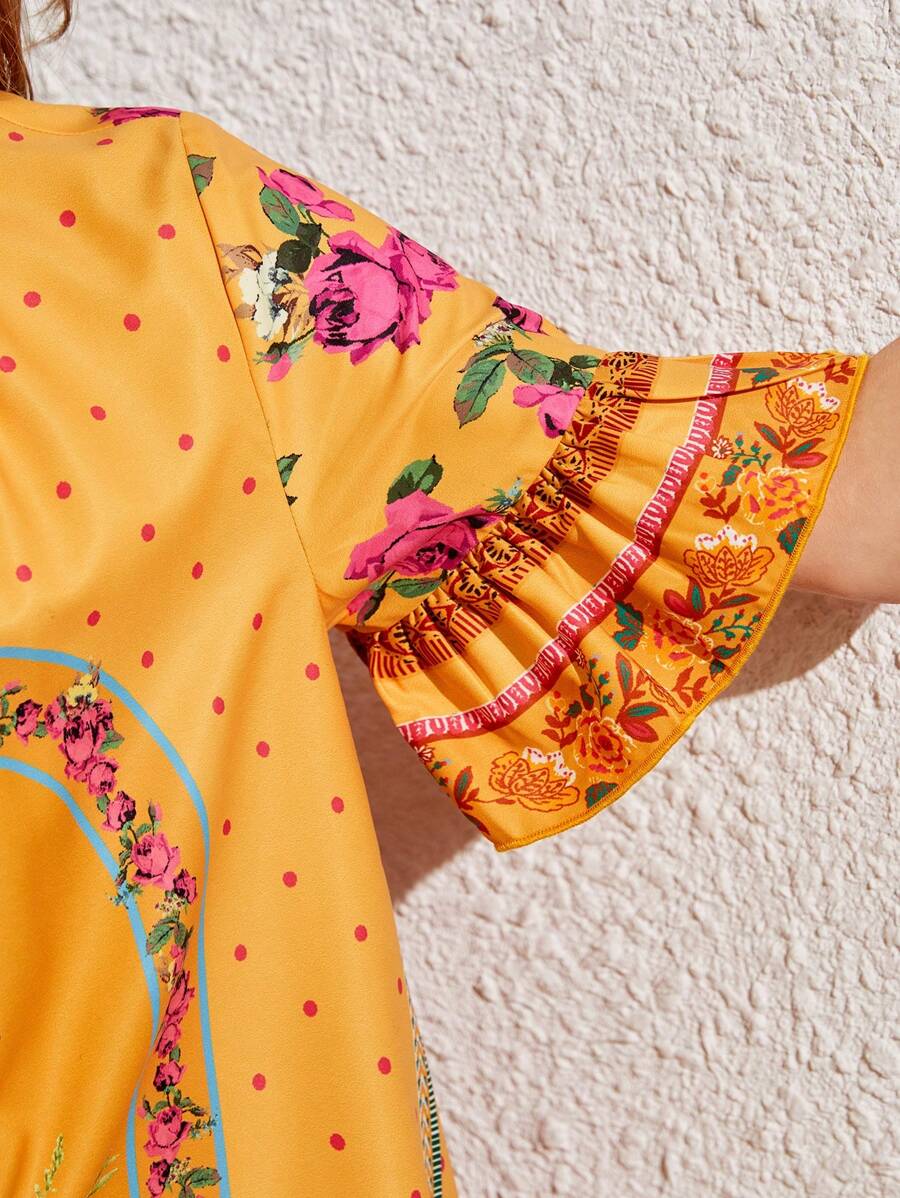 Tween Girls' Loose Fit Casual Floral Printed Weave Round Neckline Dress quantity