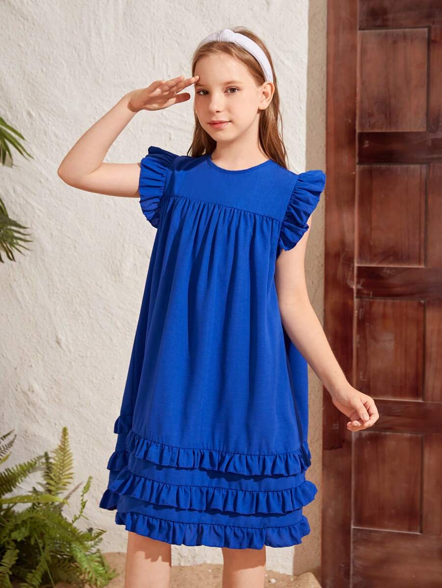 Tween Girls’ Woven Solid Color Cap Sleeve Loose Casual Dress