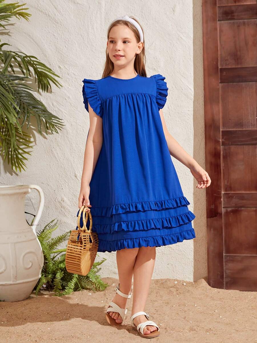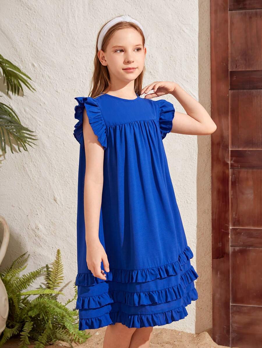 / Tween Girls’ Woven Solid Color Cap Sleeve Loose Casual Dress