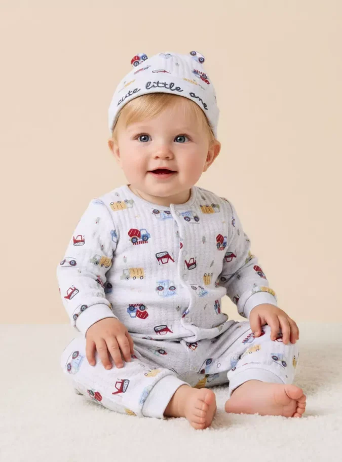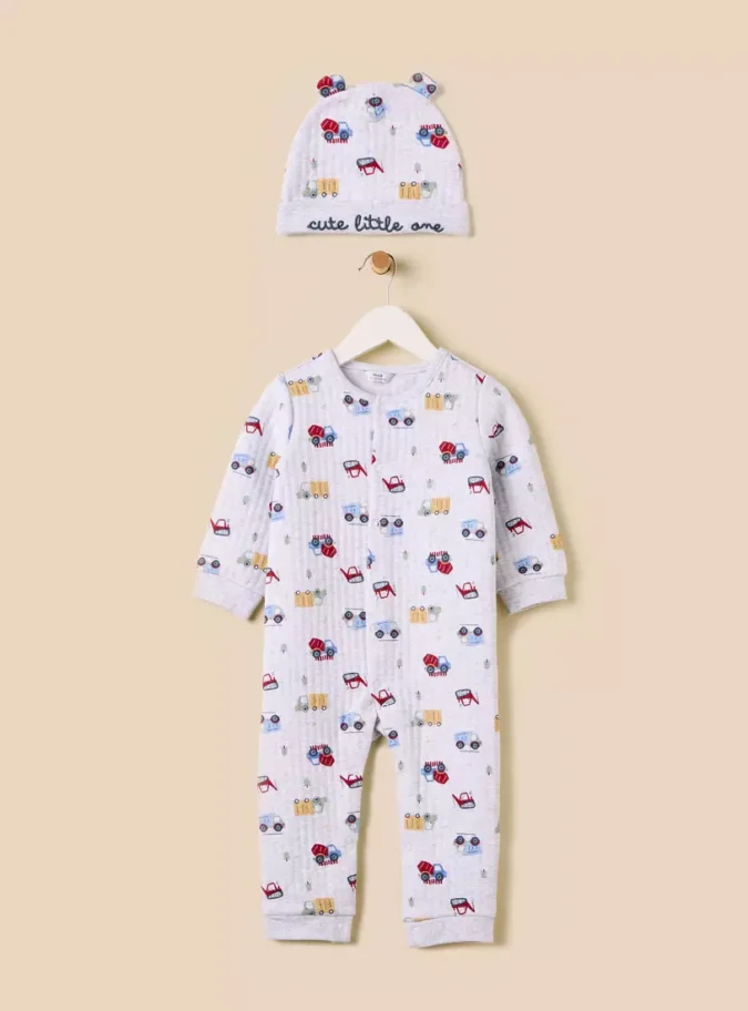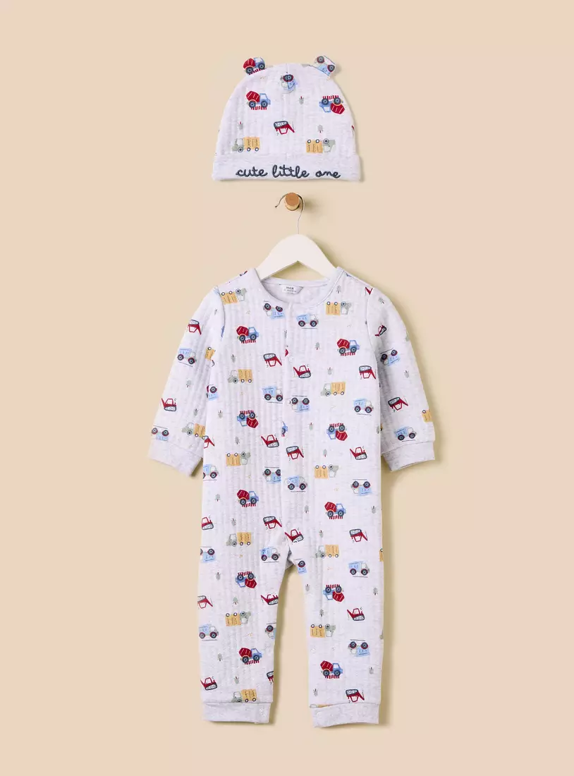 Two-Piece Set: Includes a full-length sleepsuit and a matching beanie.