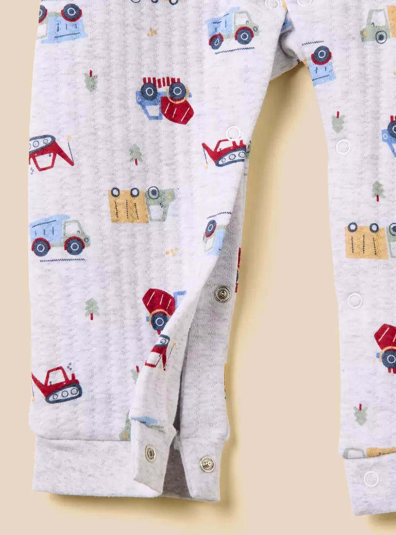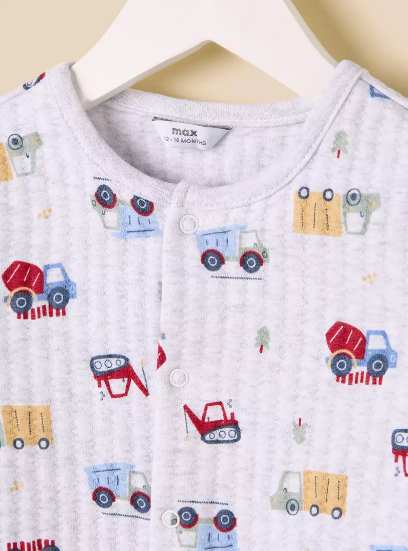 Playful Vehicle Print: Vibrant all-over design with cars, trucks, and planes.
