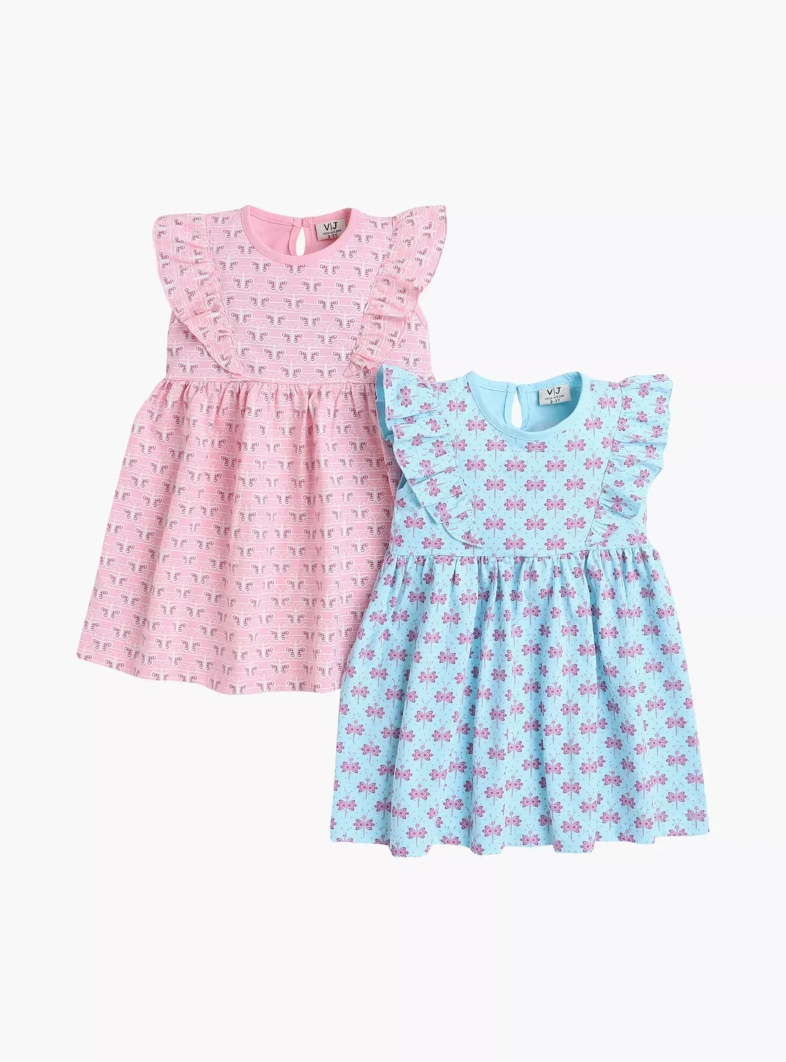 Victor and Jane 2-Piece Floral Printed Cap Sleeves Dresses