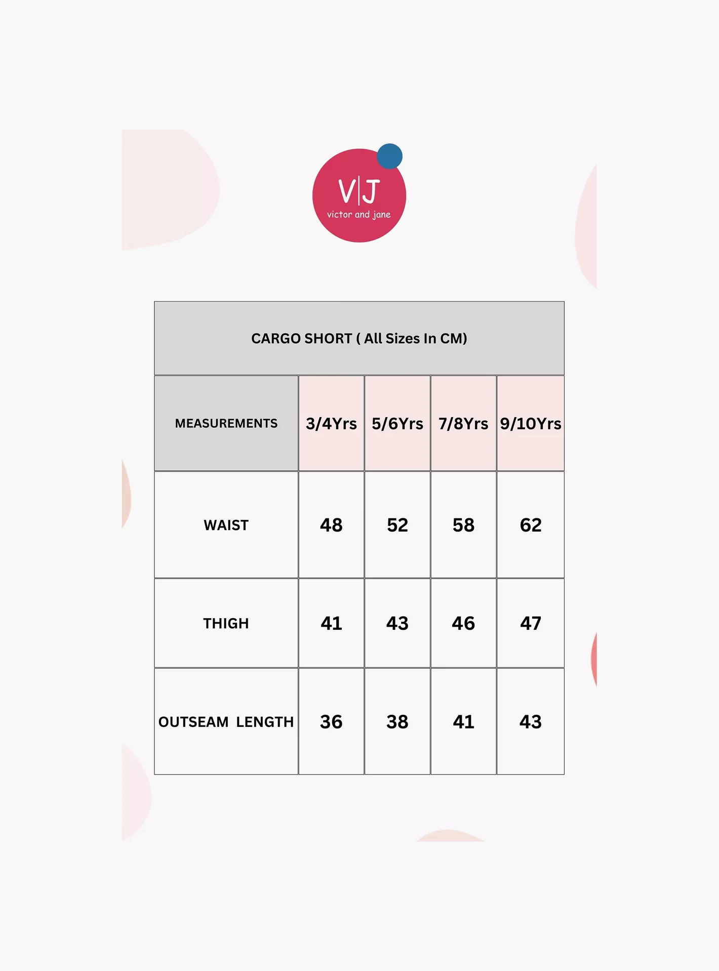 The Victor and Jane Solid Cargo Shorts are designed for boys aged 3 to 10 years, offering a blend of comfort, durability, and style. Crafted from soft, breathable cotton, these shorts are perfect for active days, whether it’s playtime, outdoor adventures, or casual outings.