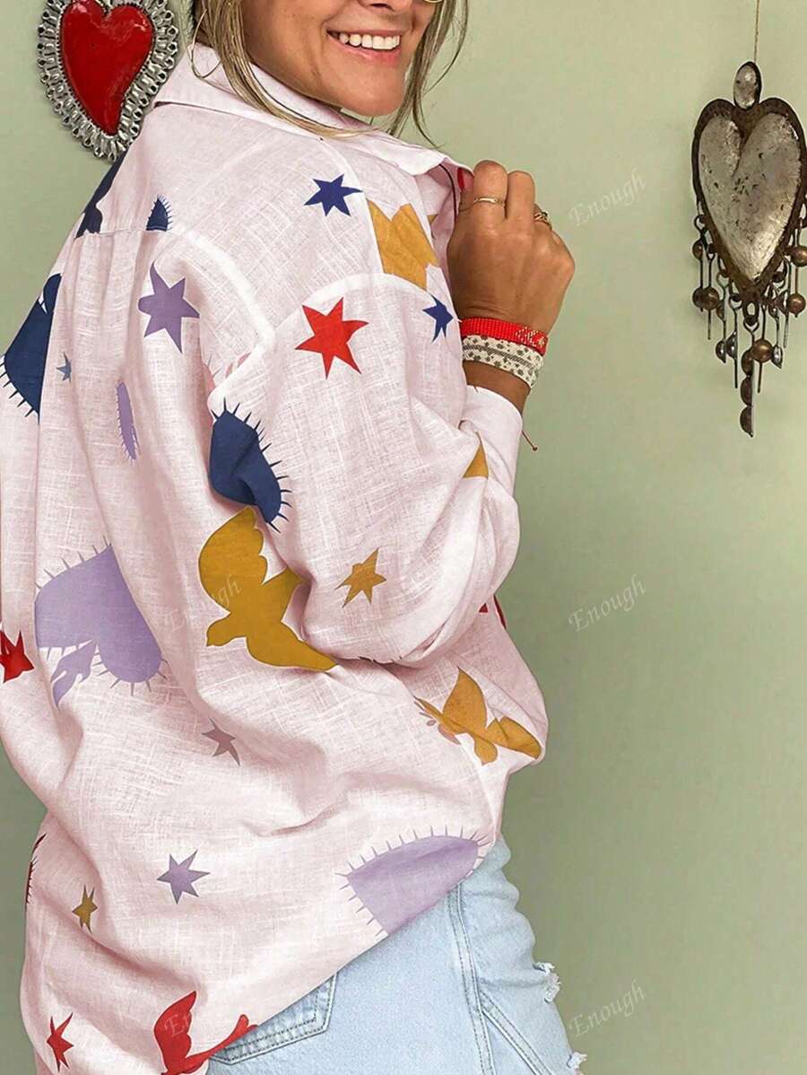 Women Front Button Closure All-Over Print Long Sleeve Casual Top