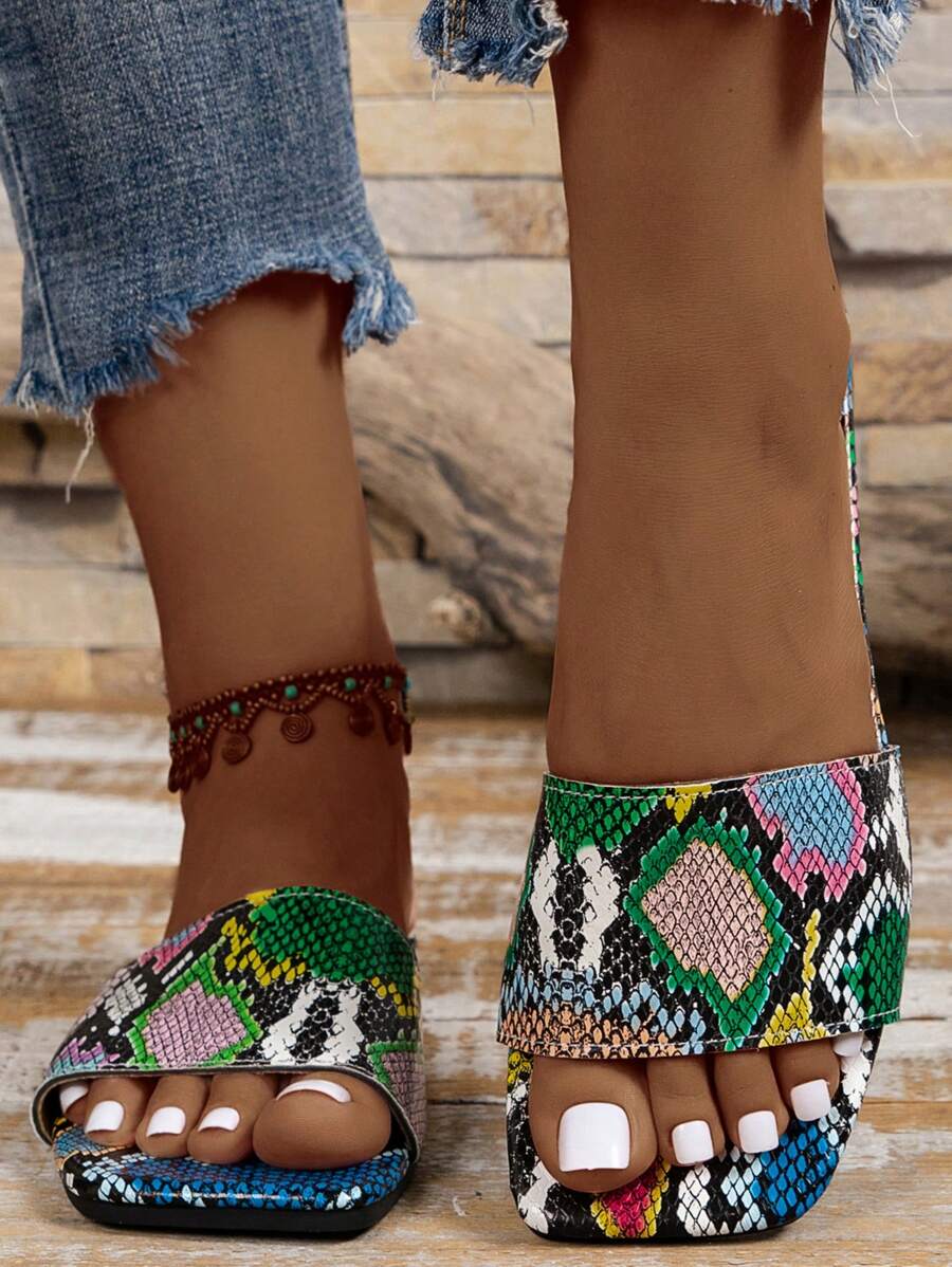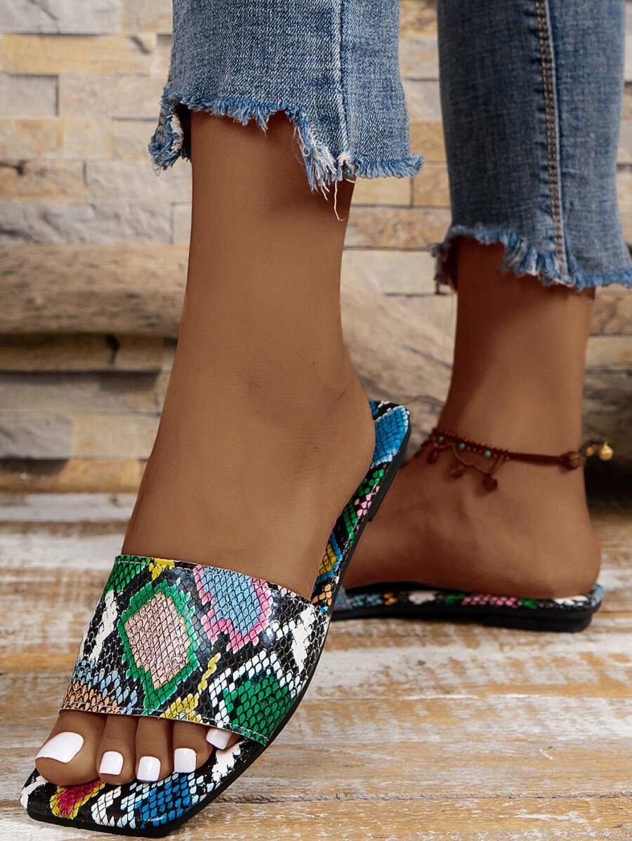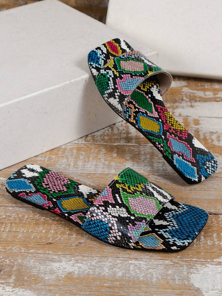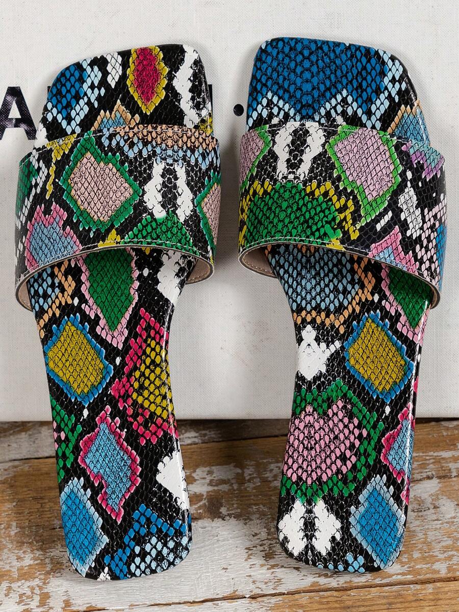 Women’s Fashionable & Bold Colored Snake Print Flat Sandals