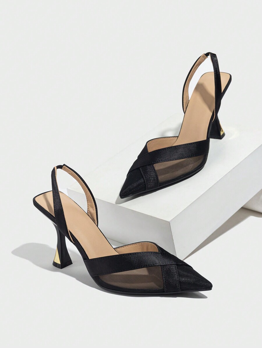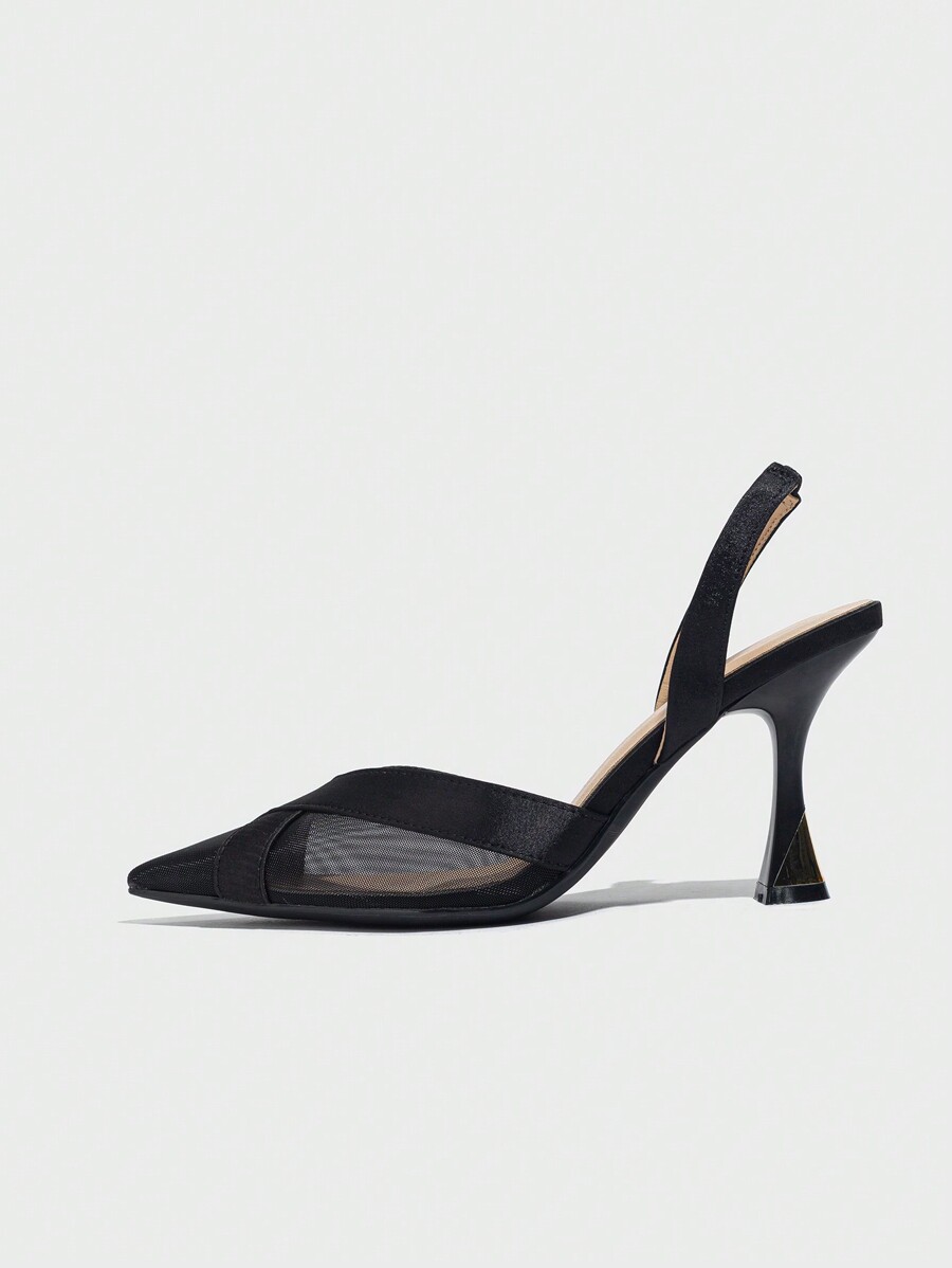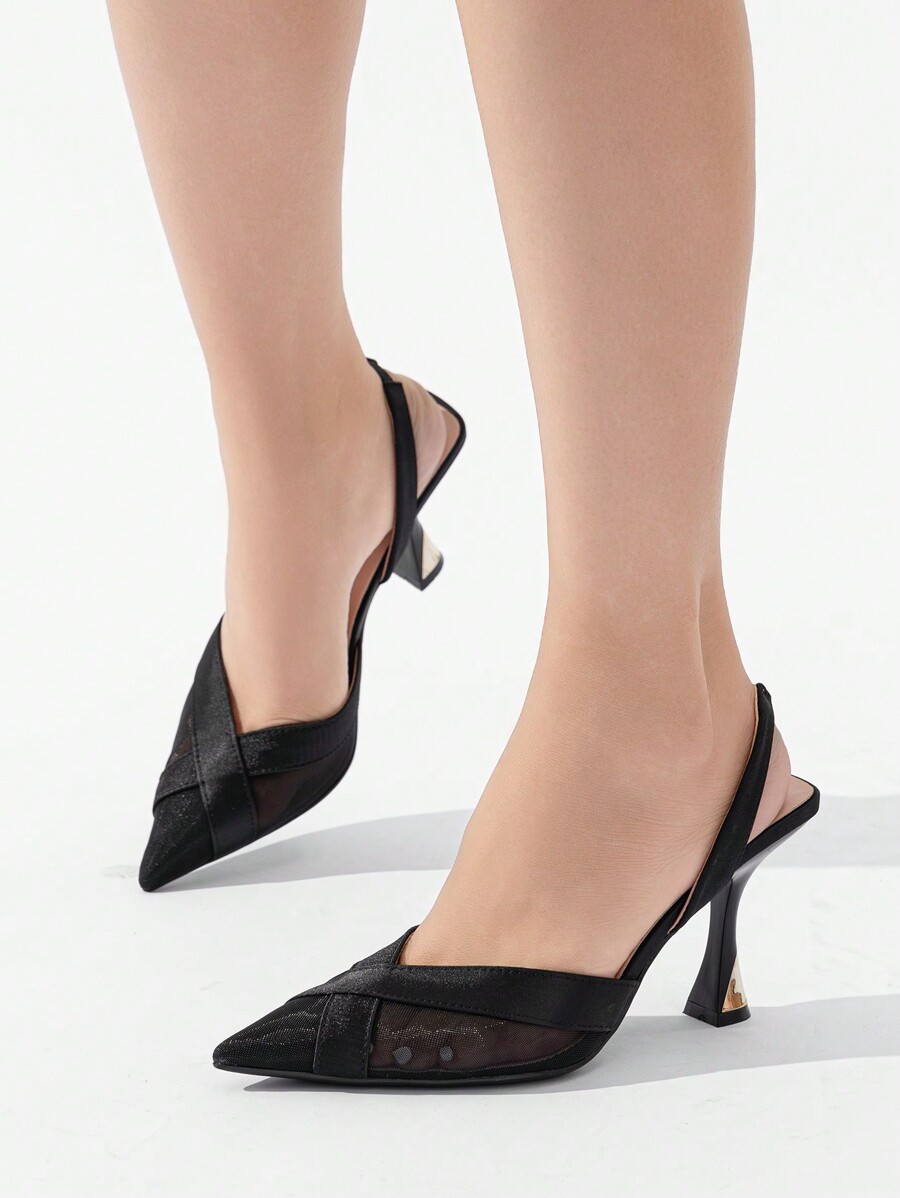 Women’s Pointy Toe Slip-On High Heel Pumps With Mesh Detail, Comfortable Closed Toe Breathable Office Shoes