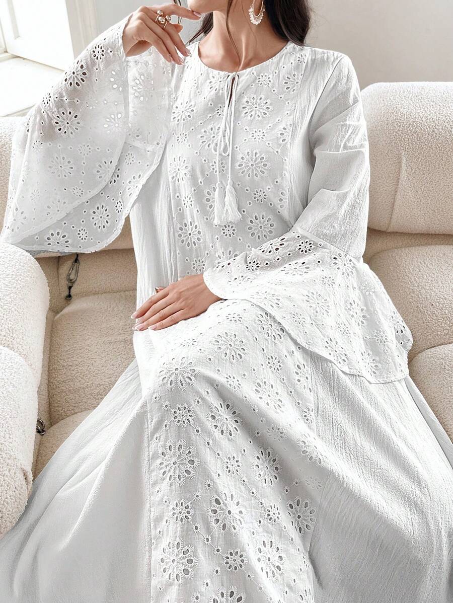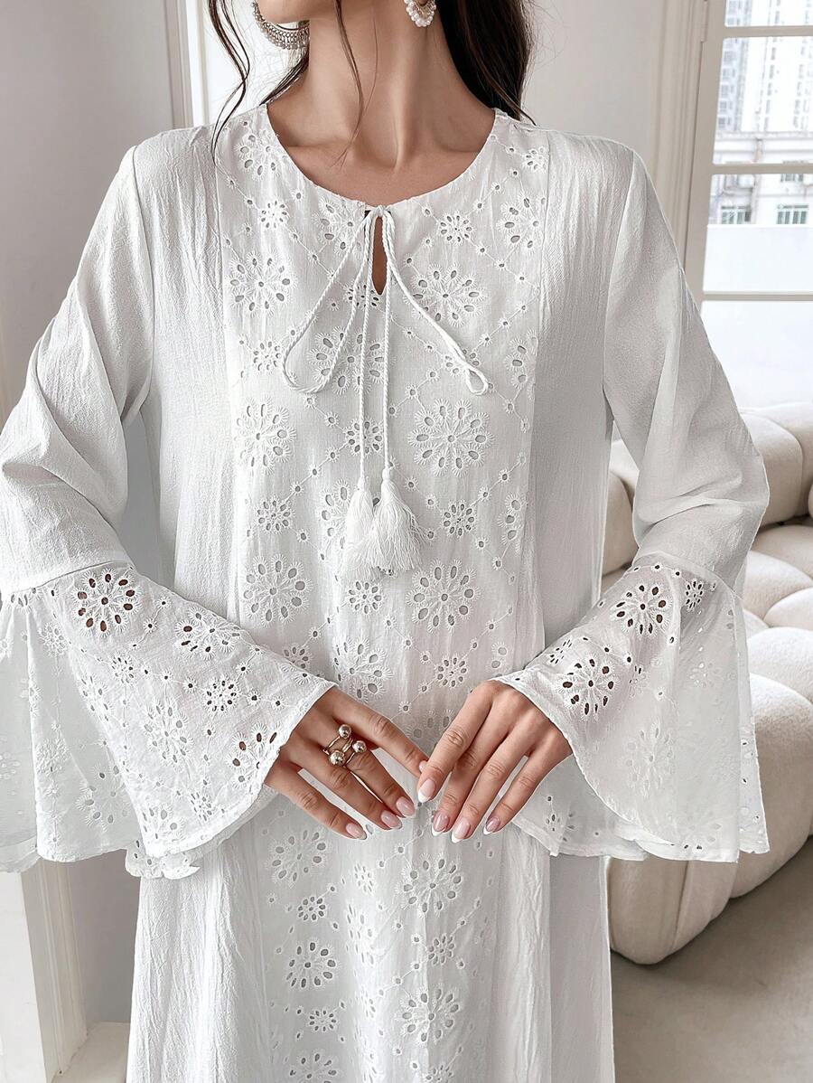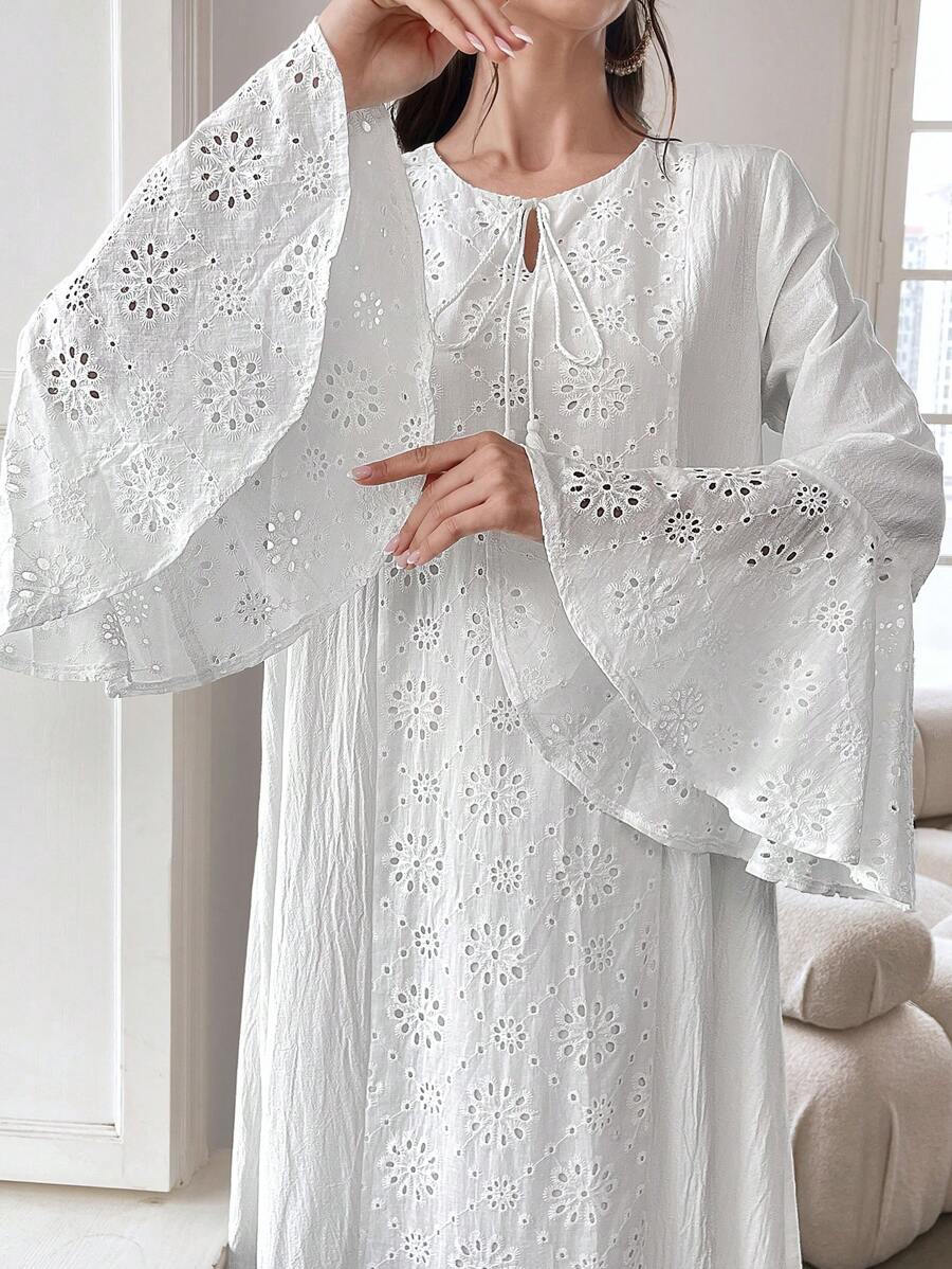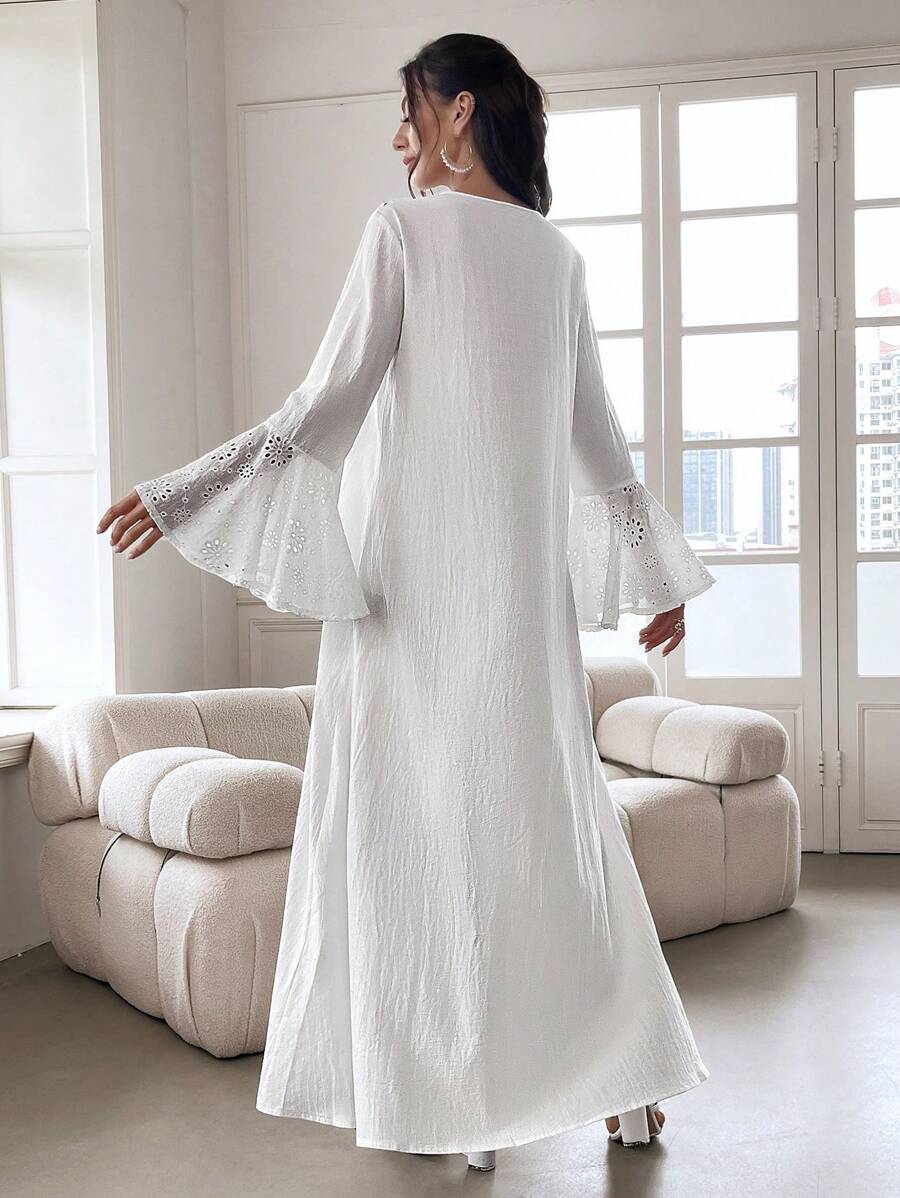 Yasmyna Contrast Eyelet Embroidery Flare Sleeve Dress quantity