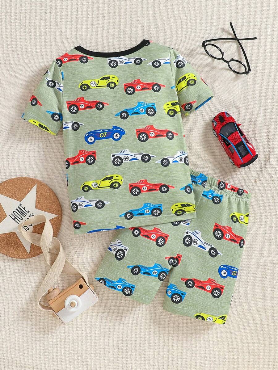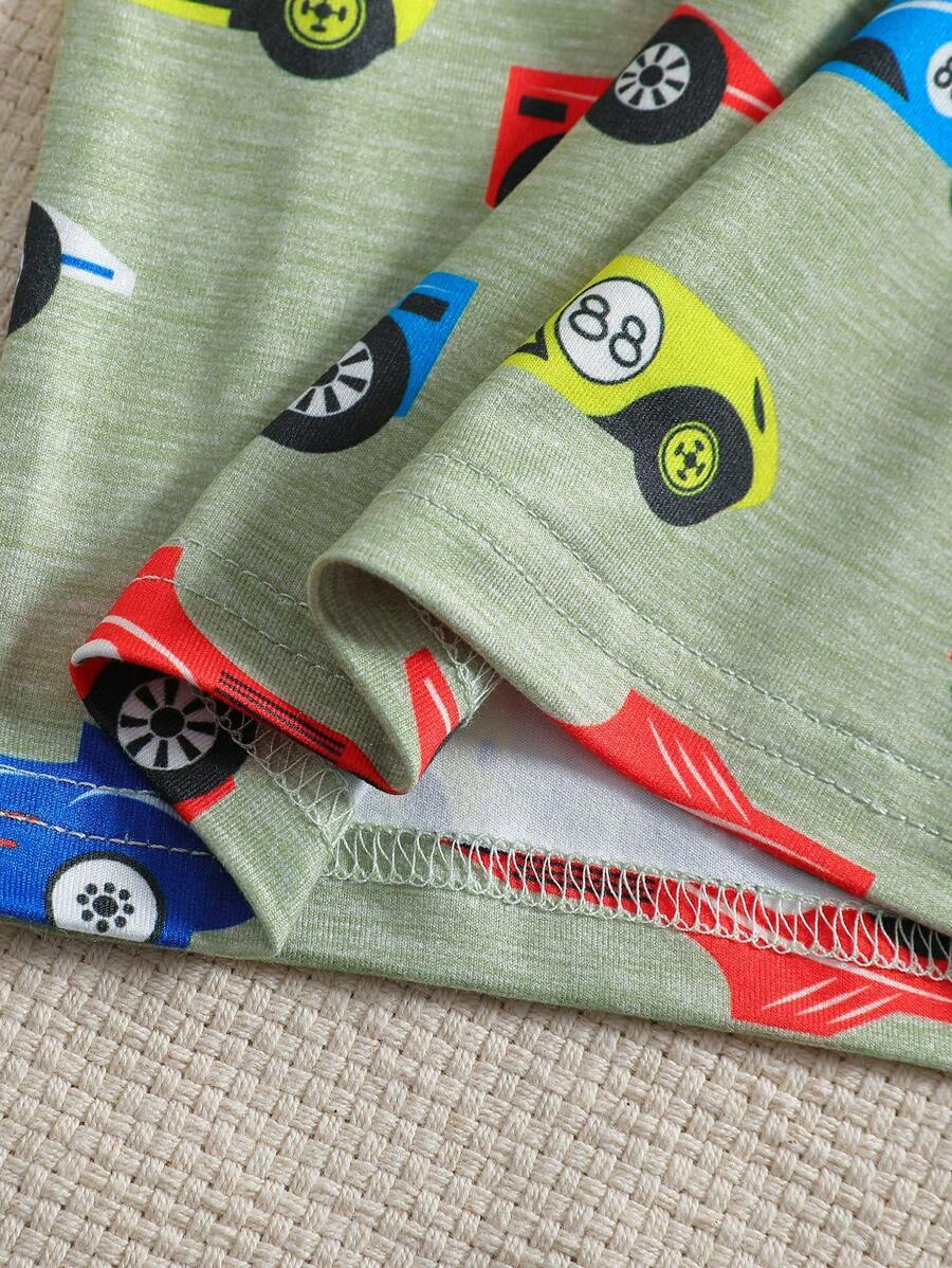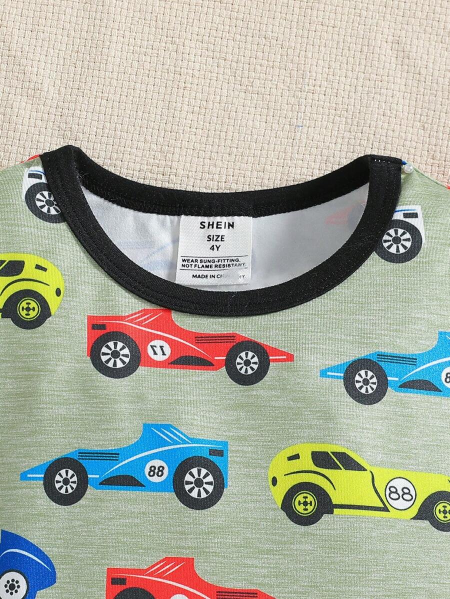 Young Boy 2pcs/Set Cartoon Car Pattern Short Sleeve Round Neck T-Shirt And Shorts Tight Homewear Set