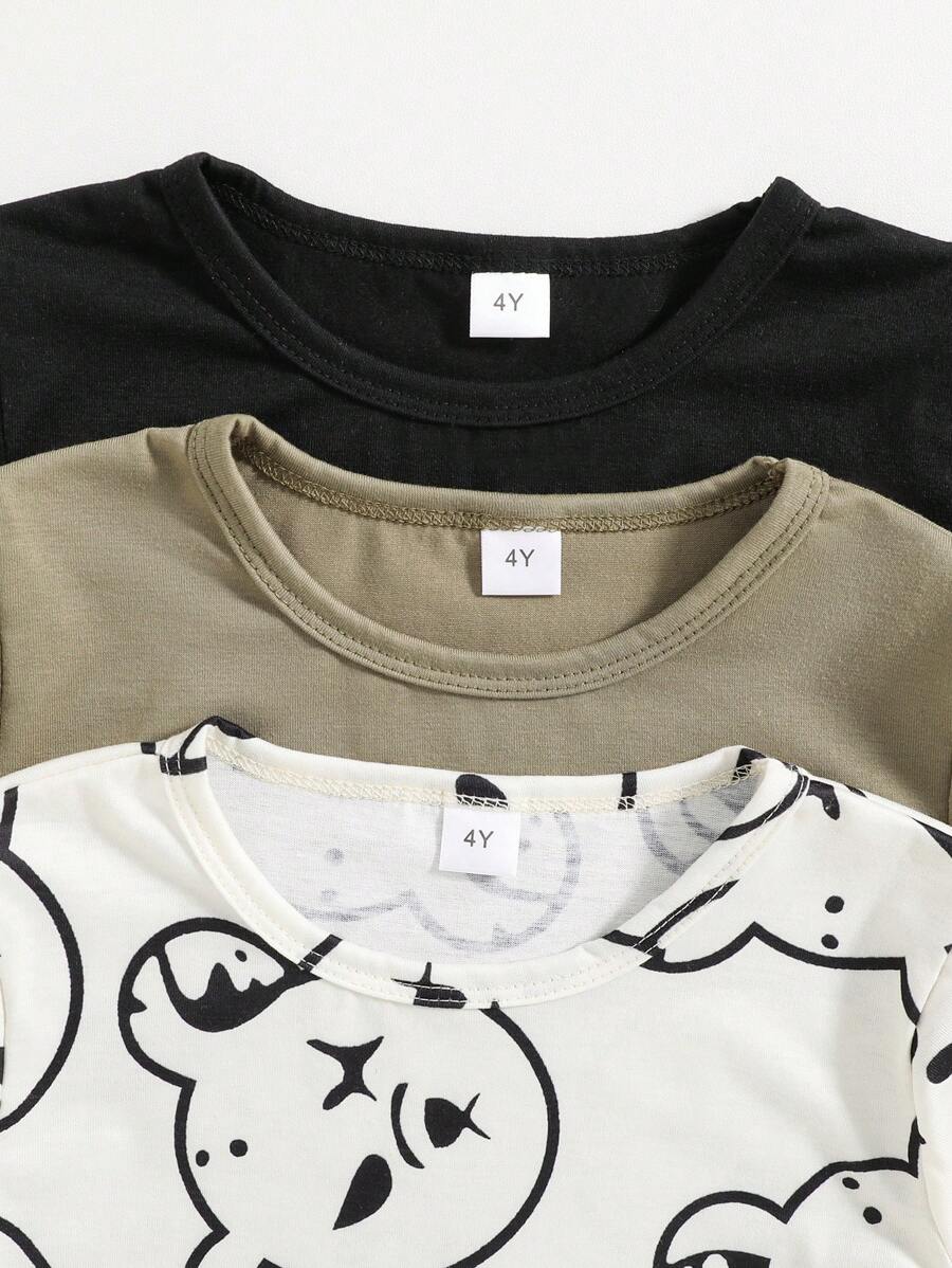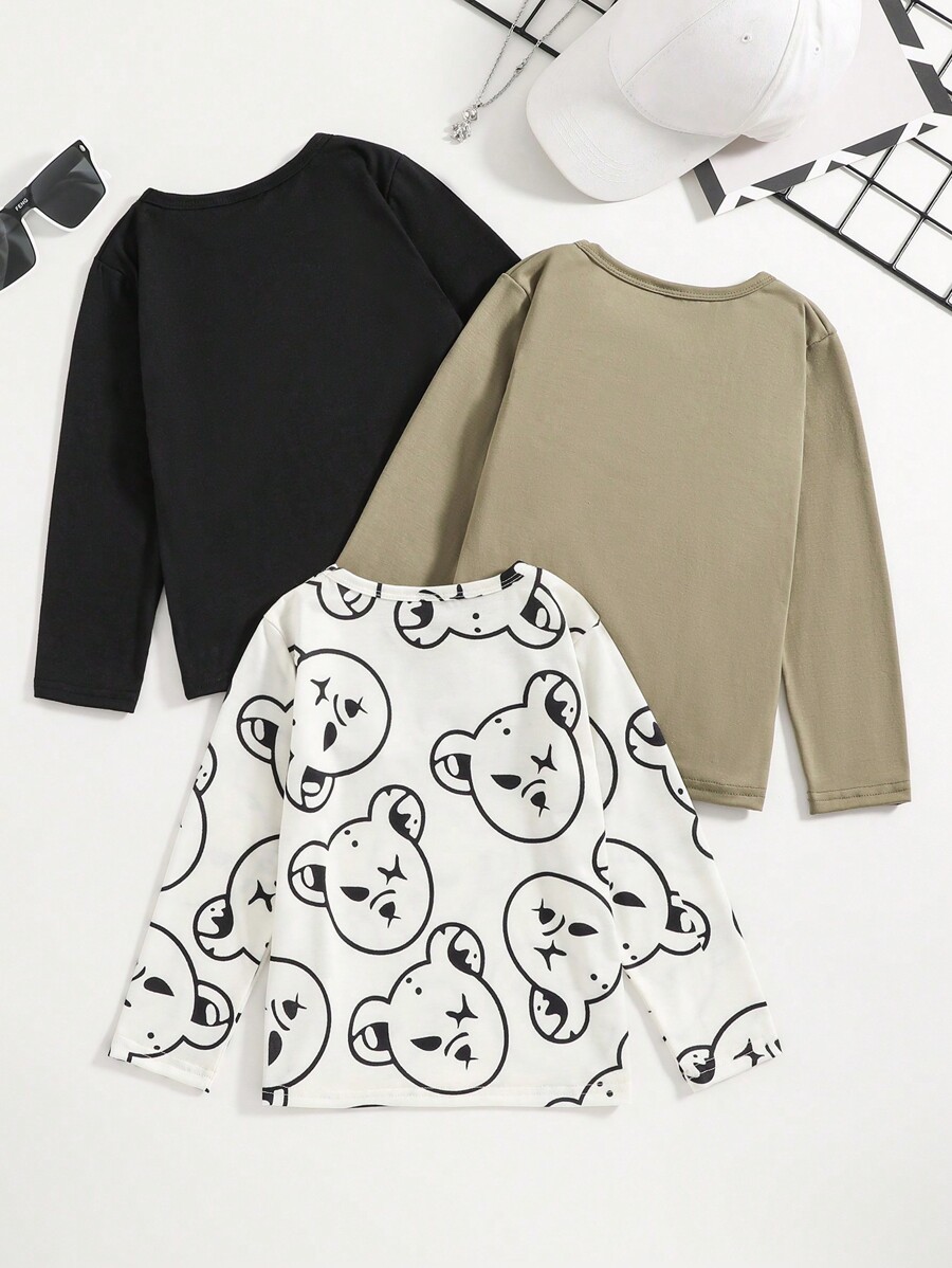 / Young Boy 3pcs Cartoon Bear Print T-Shirts