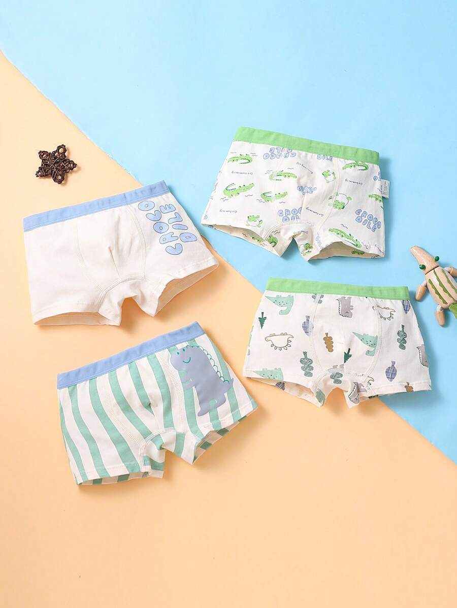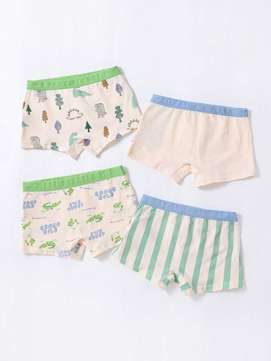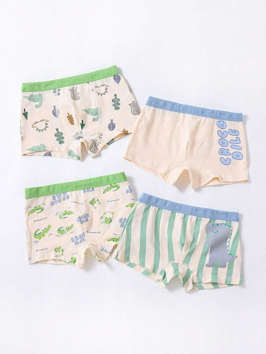 Young Boy 4pcs Cartoon Dinosaur Print Boxer Shorts, Four Seasons