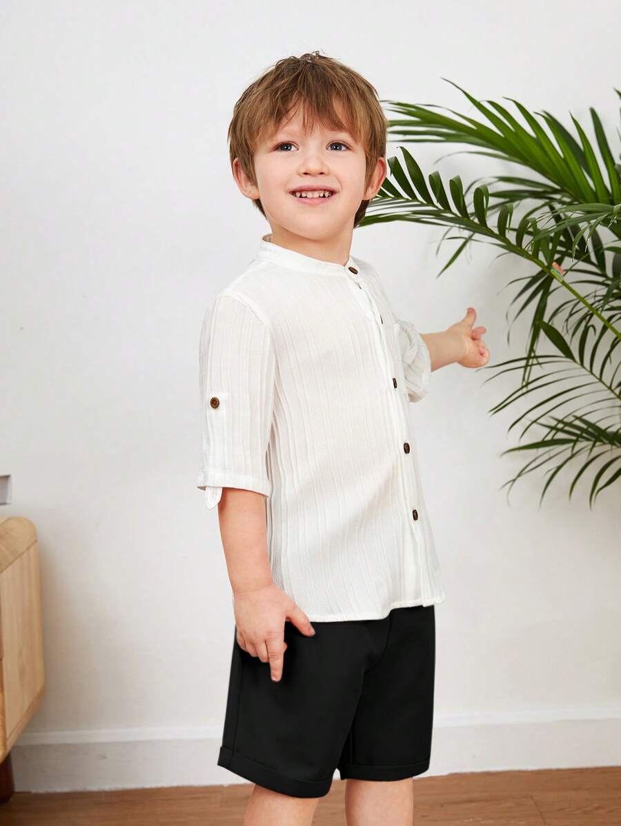 Young Boy Casual Academy Comfortable Breathable & Linen Shirt Shorts Set quantity