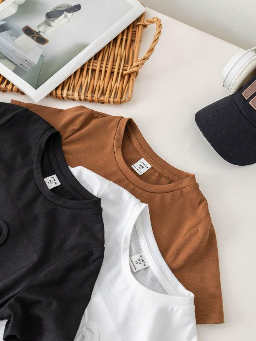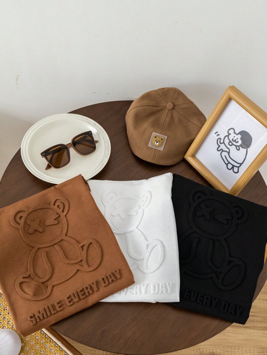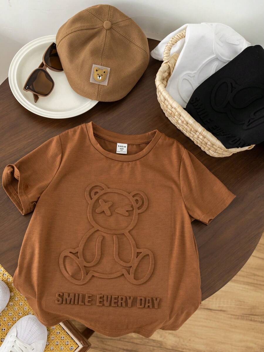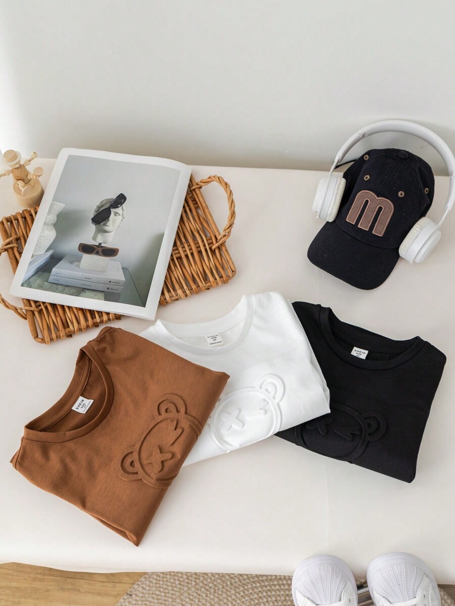/ Young Boy Casual Korean Style 3D Embossed Lovely Fun Bear T-Shirt, Multi-Pack (3 Designs, 1 Piece Per Design), Summer Outfits