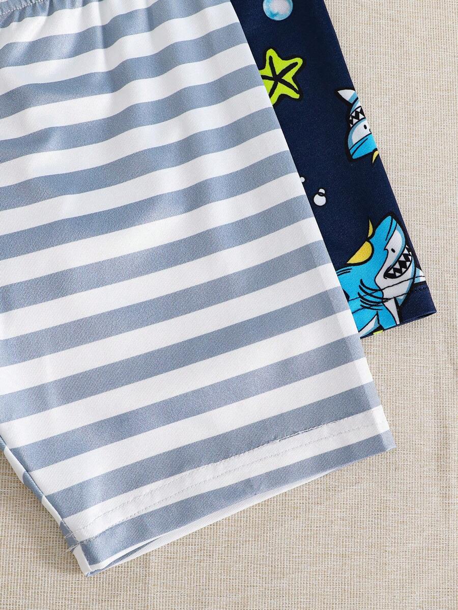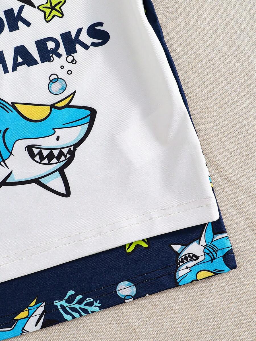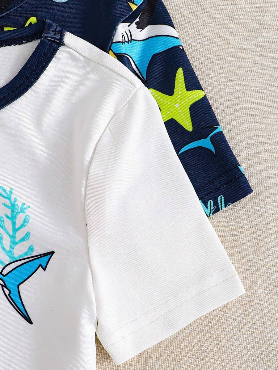 Young Boy Cute Ocean Animal Printed Snug Fit Round Neck T-Shirt And Shorts Set, Casual Homewear