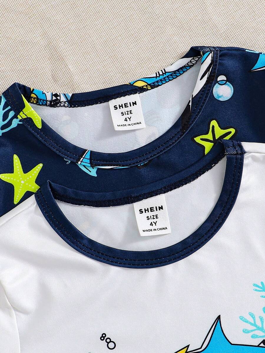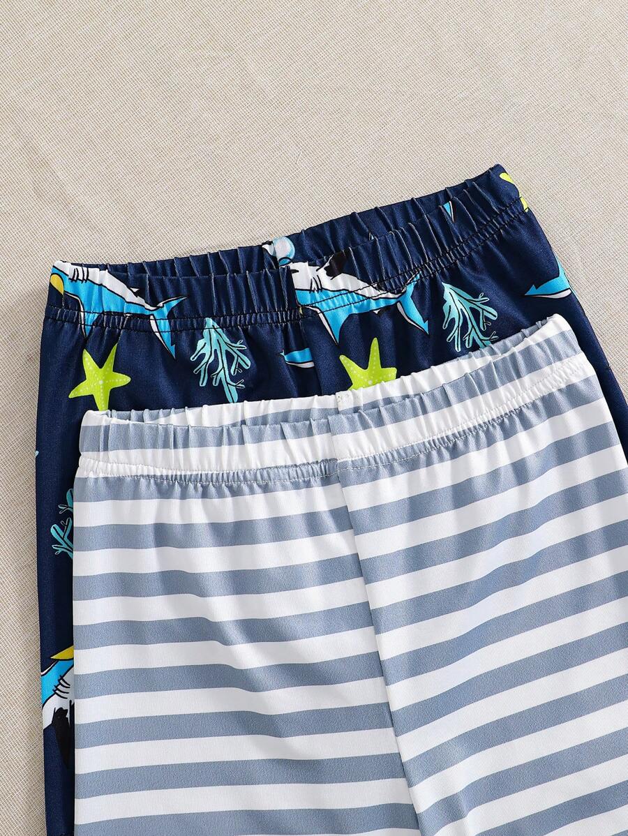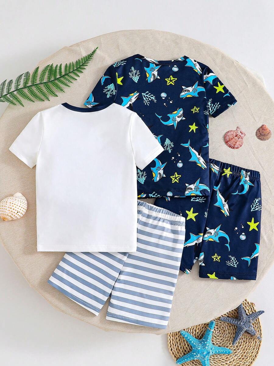 Young Boy Cute Ocean Animal Printed Snug Fit Round Neck T-Shirt And Shorts Set, Casual Homewear