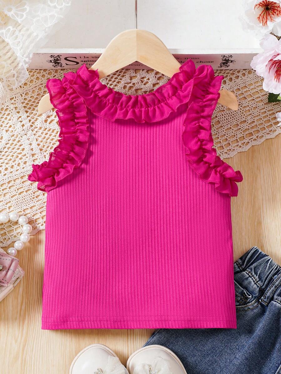 / Young Girl Fashionable Ruffled Trim Tank Top For Summer