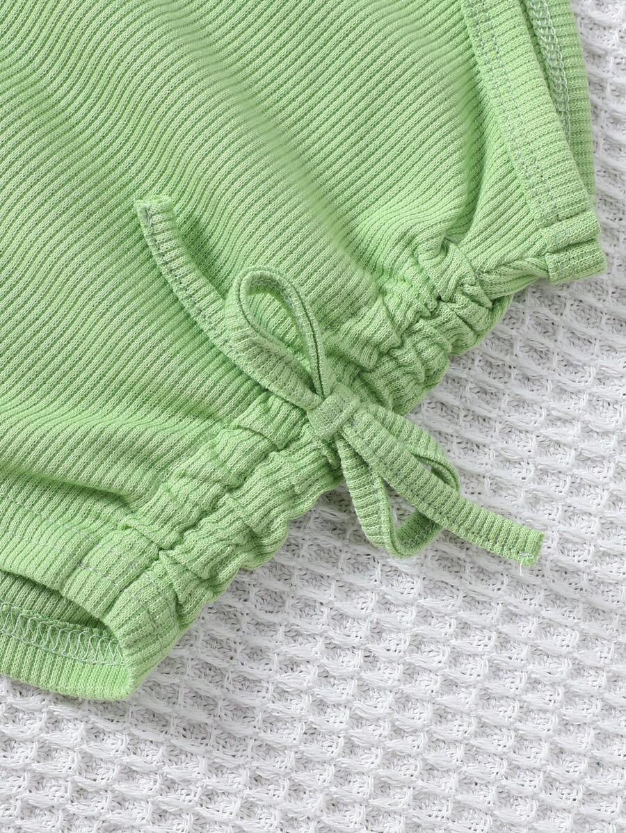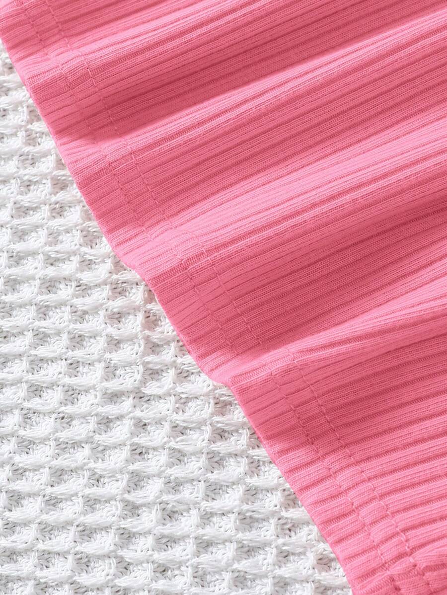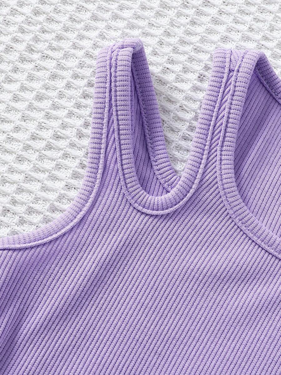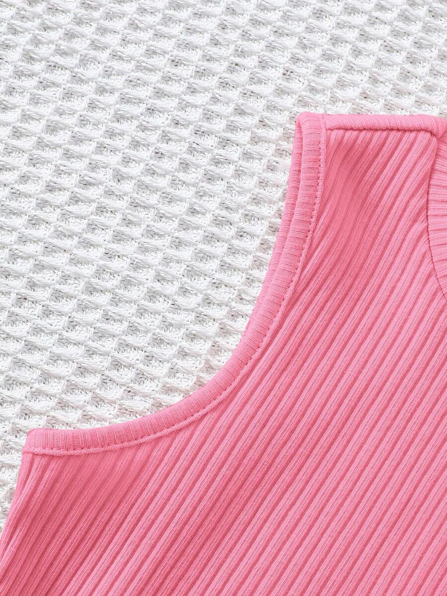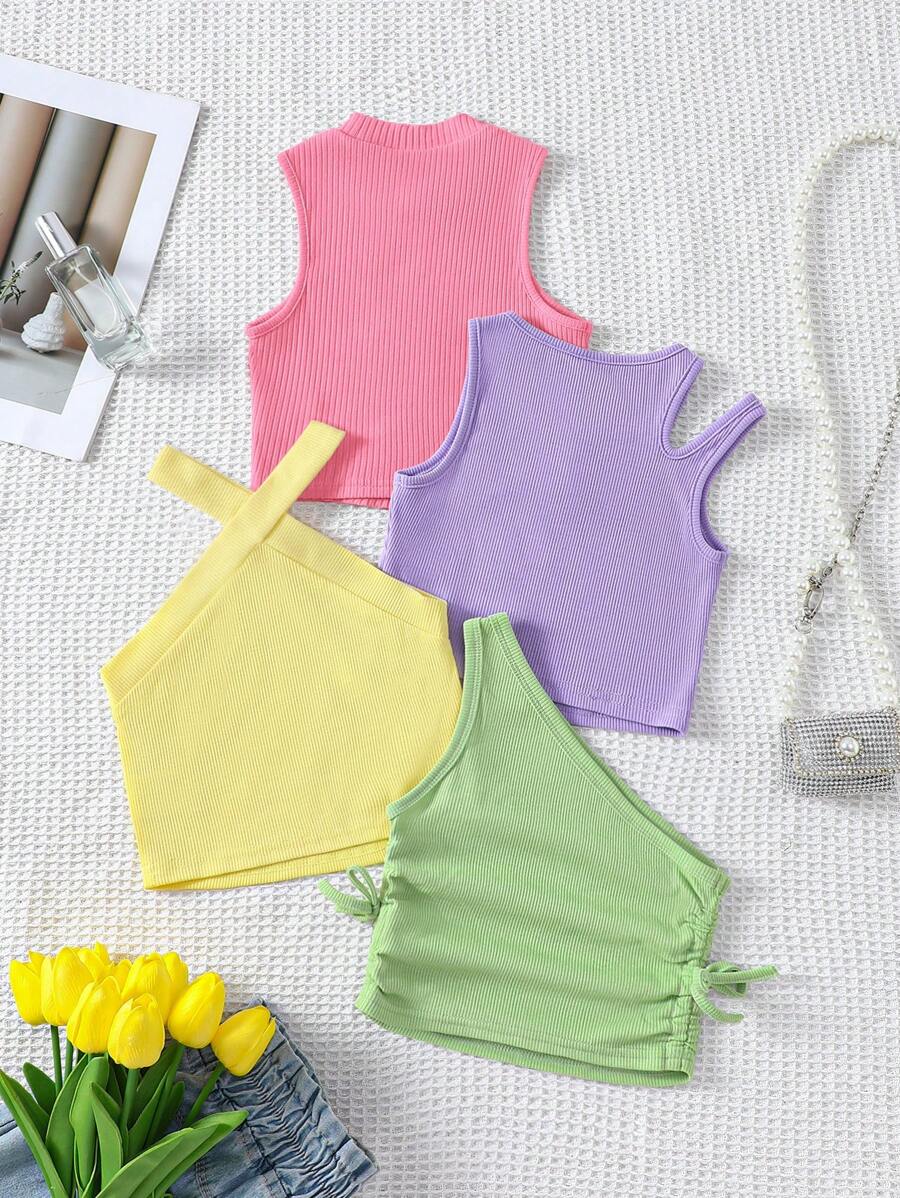 Young Girl Knitted Solid Cropped Casual Tank Top 4pcs Set